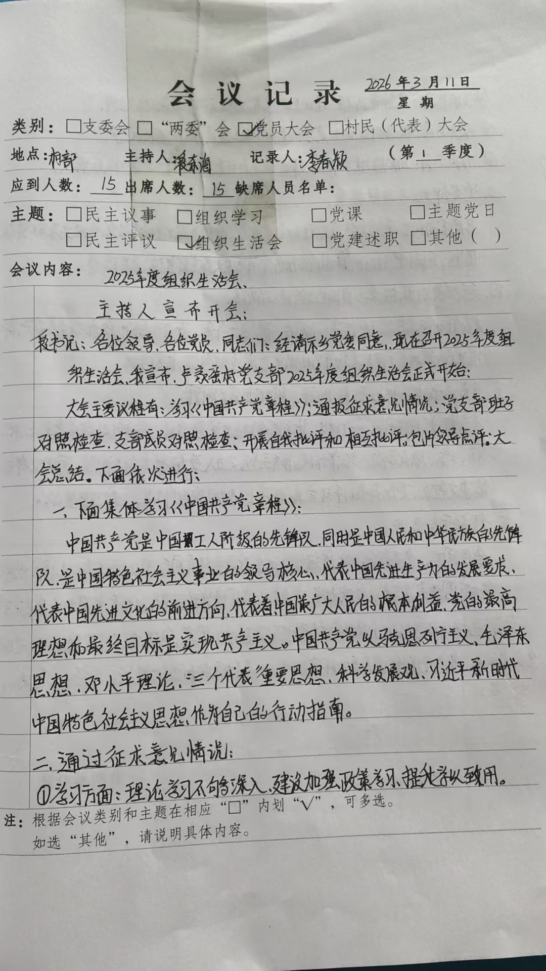 党务公开—贯彻民主集中制—2025年度组织生活会