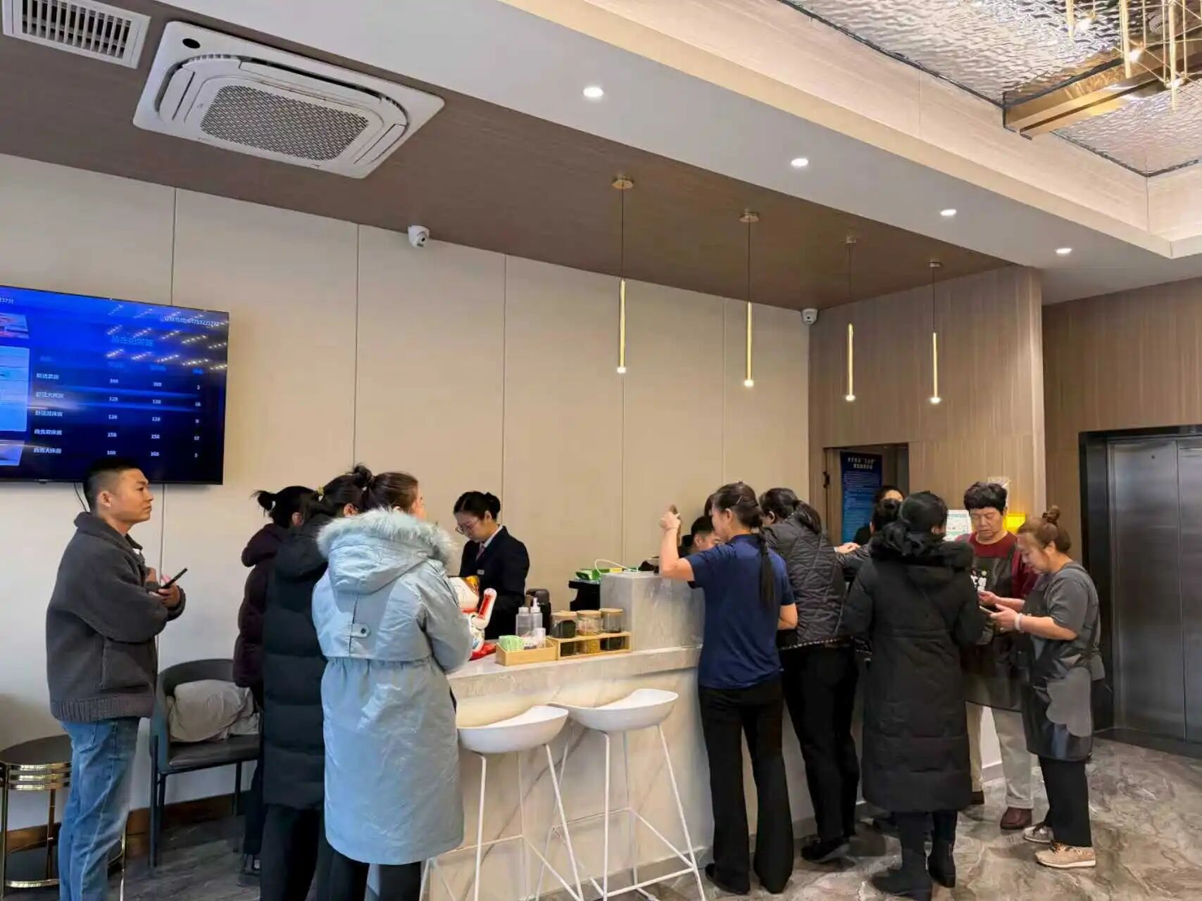 服务现场,工作人员在宾馆前台设立临时服务点,高效引导员工有序排队、逐项办理,全程不离岗、不扎堆、不影响正常营业,大幅压缩办理时长,真正实现办事、经营“两不误”。