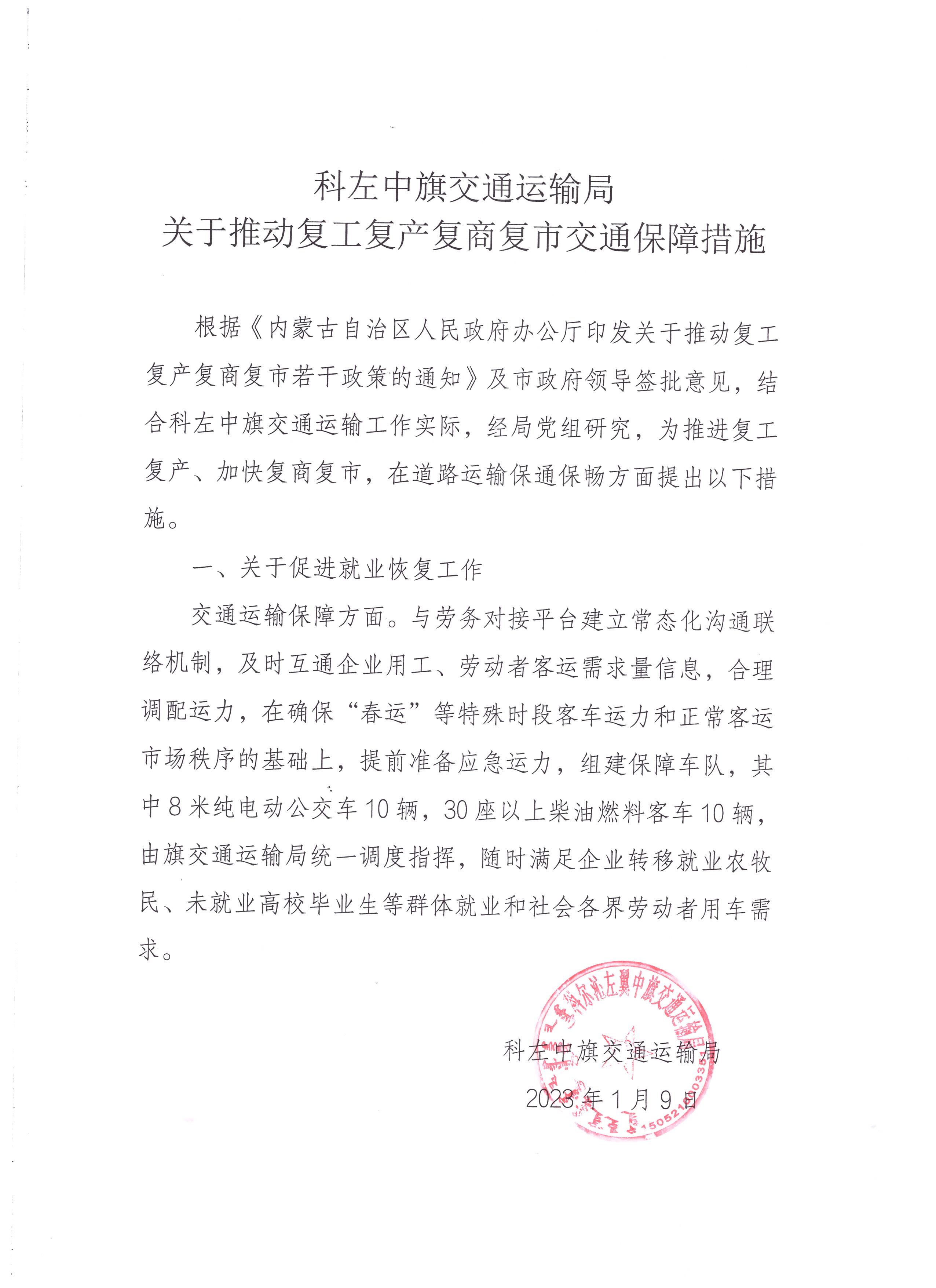 关于推动复工复产复商复市交通保障措施