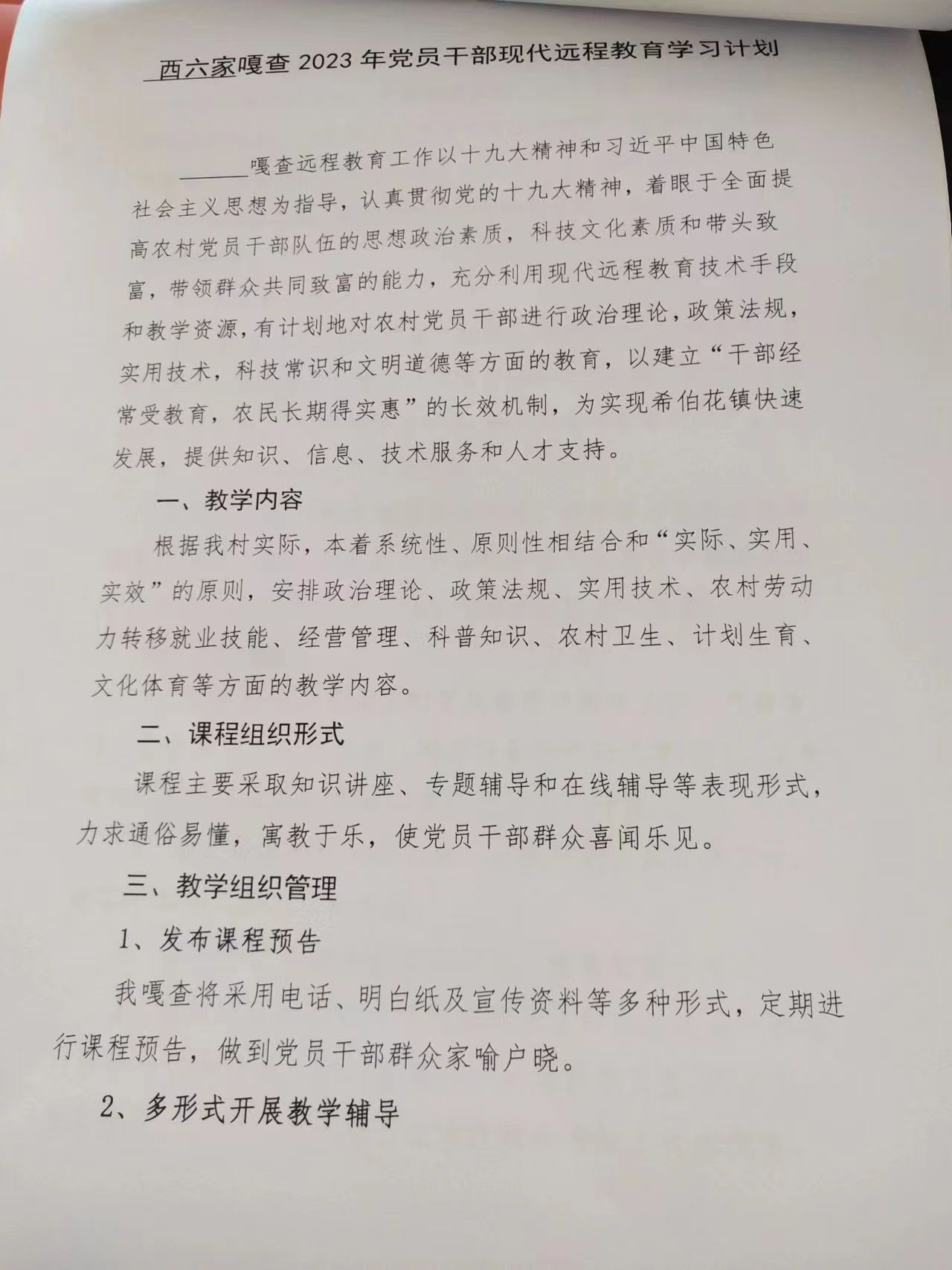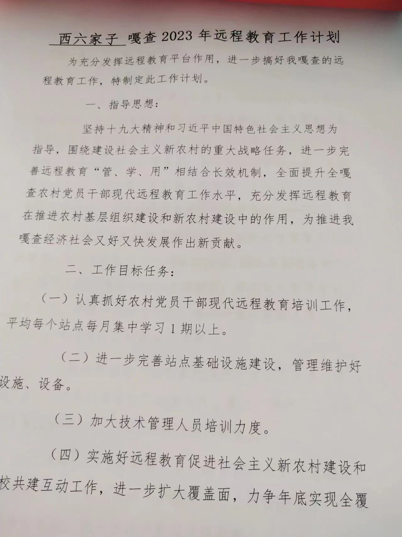 西六家子嘎查2023年远程教育工作计划