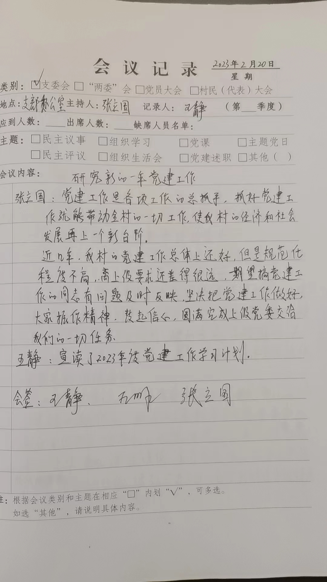 支委会会议(2023年2月份)