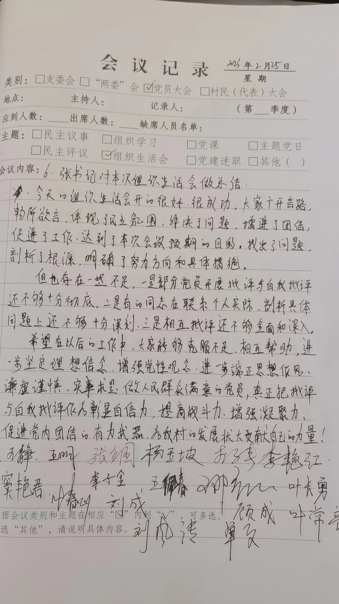 2022年底组织生活会和民主评议党员(2023年2月25日)
