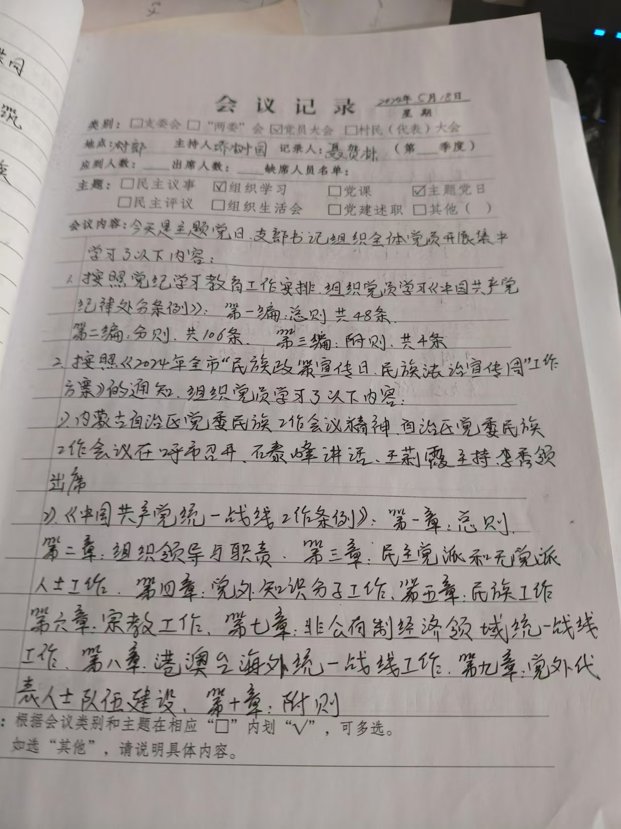 新立屯村党支部结合主题党日,支部书记组织全体党员开展集中学习了以下内容