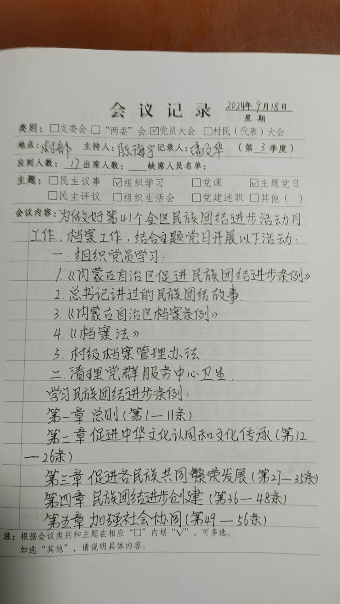 小周恒堡村9月份开展党组织主题党日活动