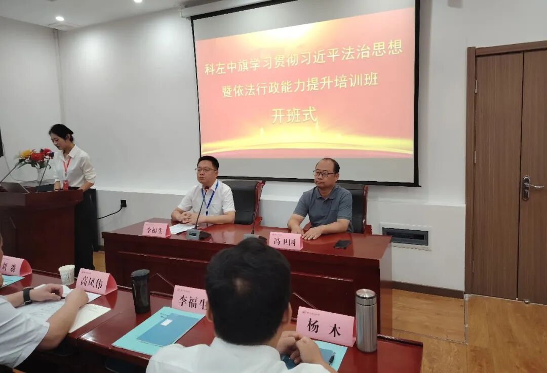 8月19日上午,科左中旗委政法委在西北政法大学组织举办科左中旗学习贯彻习近平法治思想暨依法行政能力提升培训班开班仪式。西北政法大学刑事法学院院长冯卫国出席开班仪式并致欢迎词,旗委副书记、政法委书记李福生在开班仪式上讲话。旗委常委、纪委书记、监委主任高凤伟,旗人大常委会党组成员、副主任杨木,旗政府党组成员、政府副旗长、公安局党委书记、局长刘淼,政协科左中旗党组副书记、副主席杜惠文,旗人民法院党组书记、院长阿古达木出席开班仪式,旗政法系统各单位及相关部门班子成员、业务骨干,各苏木乡镇场(街道)政法委员、副书记等60余人参加开班仪式。