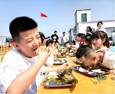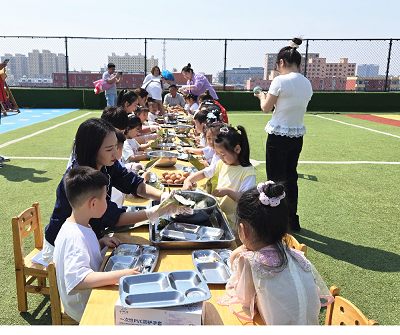 活动还设置了包粽子环节,大家围在一起,大手拉小手一起包粽子,场面十分温馨。随后幼儿园的工作人员还为现场小朋友分发了粽子和鸡蛋。小朋友们围坐在一起,品尝着传统美食,共同感受中华传统文化的魅力。