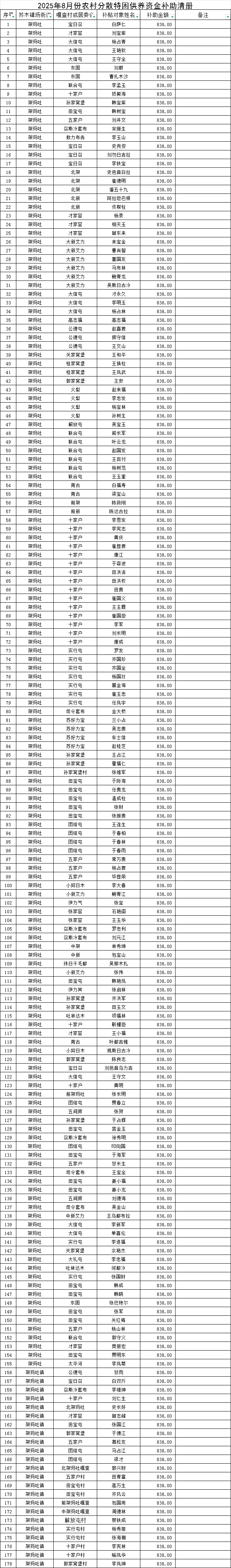 架玛吐镇2025年8月份农村分散特困供养资金补助清册