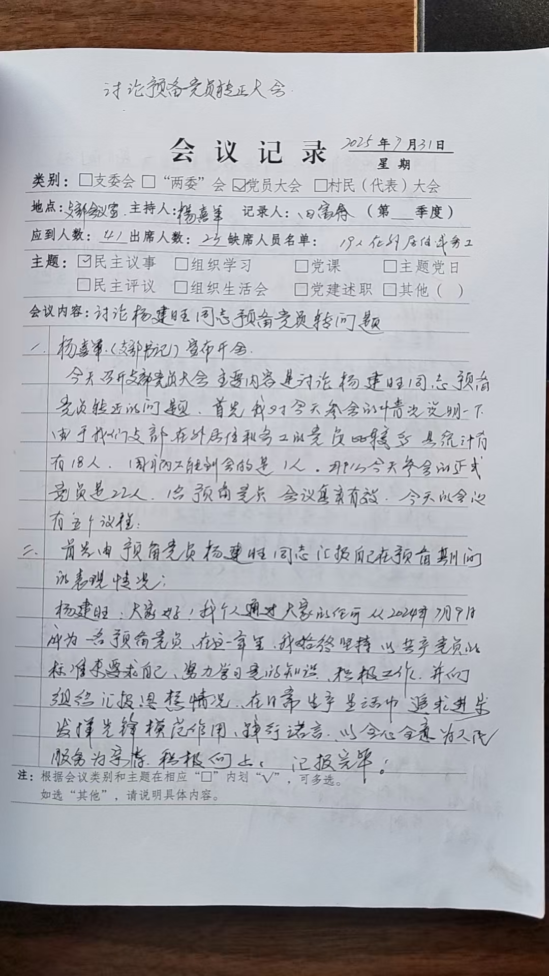 平安新村党支部发展党员会议记录