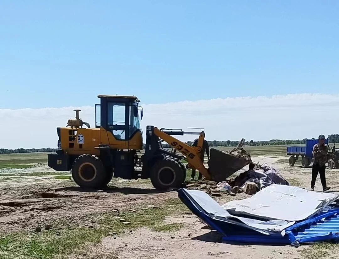 架玛吐镇吐林达木嘎查组织人员及铲车对村内两处林草资源保护领域违建进行整改拆除,并将砖头瓦砾等废弃物妥善清理清运。