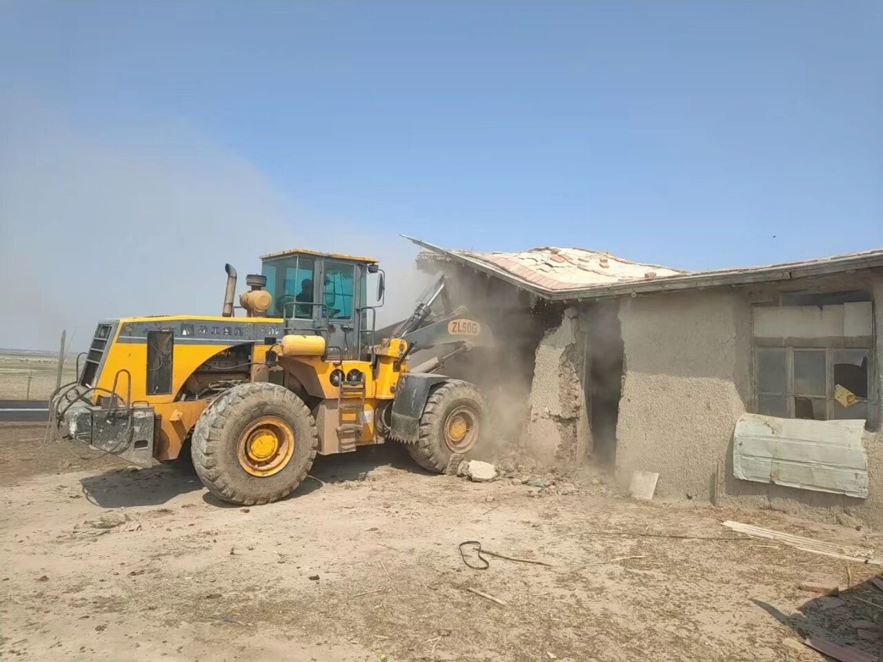 5月22日,架玛吐镇实行屯村组织人员及铲车对村内最后一处林草资源保护领域违建进行拆除整改。