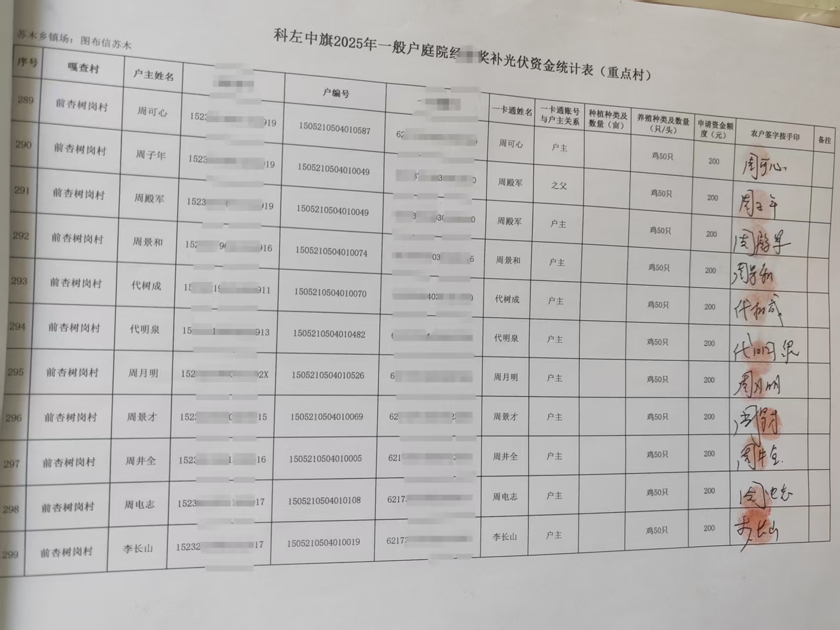 2025年前杏树岗村庭院经济奖补统计