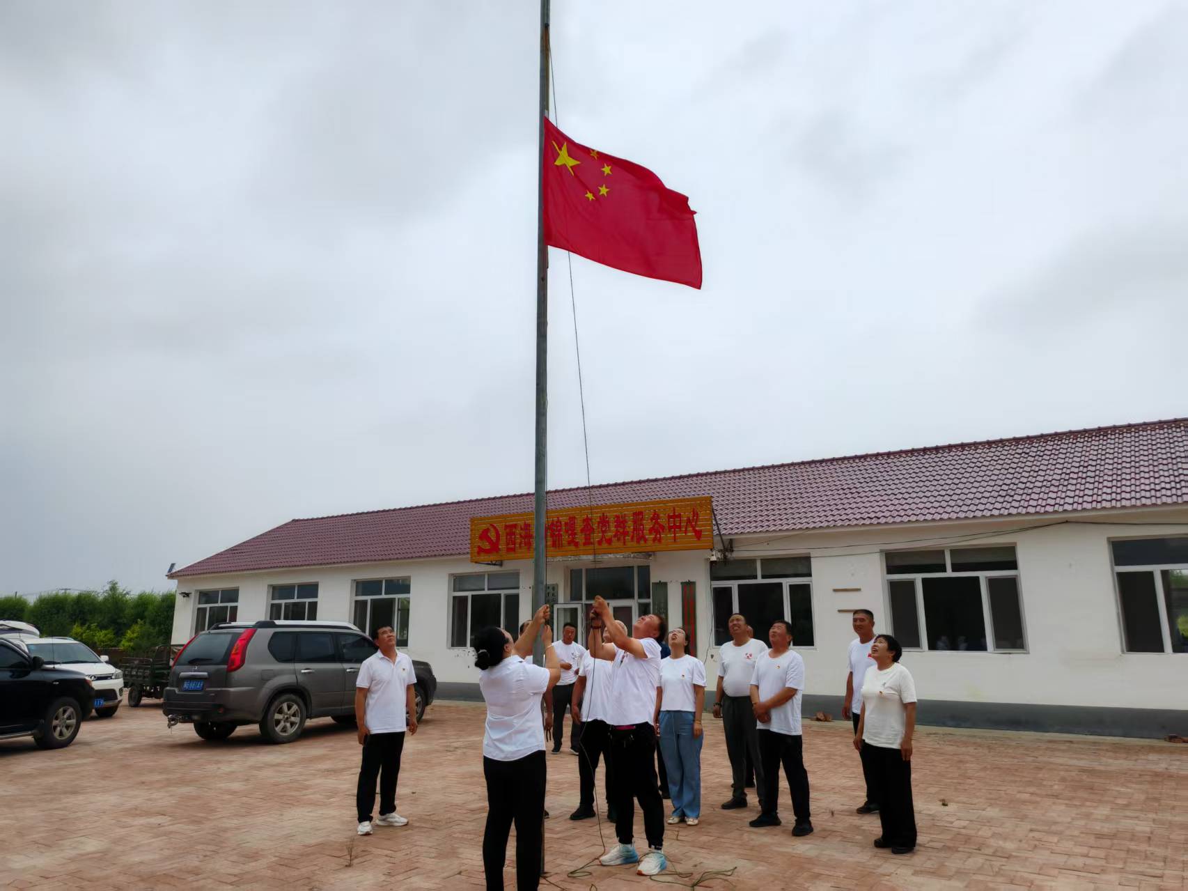 七一党建主题党日活动升国旗,奏唱国歌