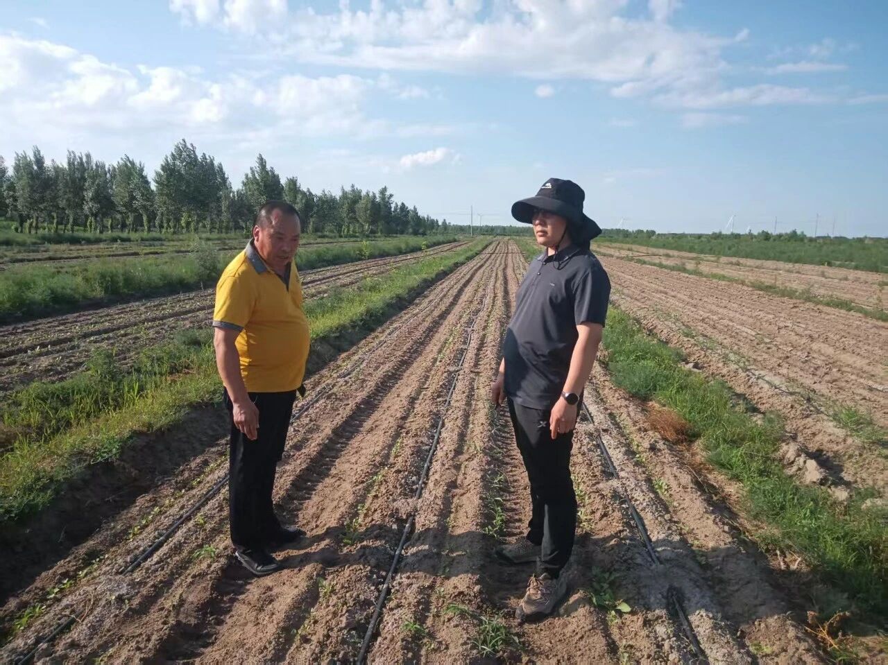 7月14日,架玛吐镇党群服务中心副主任黄冬冬深入才家窑村查看自来水水质并排查林下违规种植情况