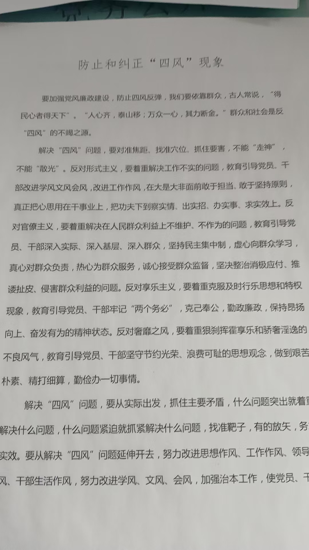 防止和纠正“四风”现象情况