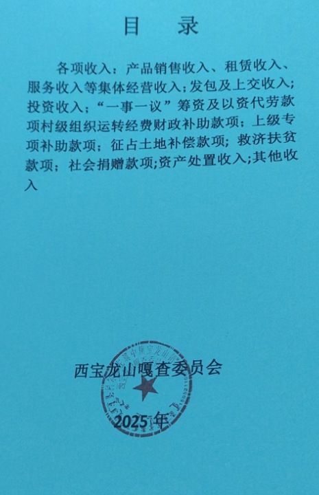 各项收入:产品销售收入、租赁收入、服务收入等集体经营收入;发包及上交收入;投资收入;“一事一议”筹资及以资代劳款项村级组织运转经费财政补助款项;上级专项补助款项;征占土地补偿款项; 救济扶贫款项;社会捐赠款项;资产处置收入;其他收入