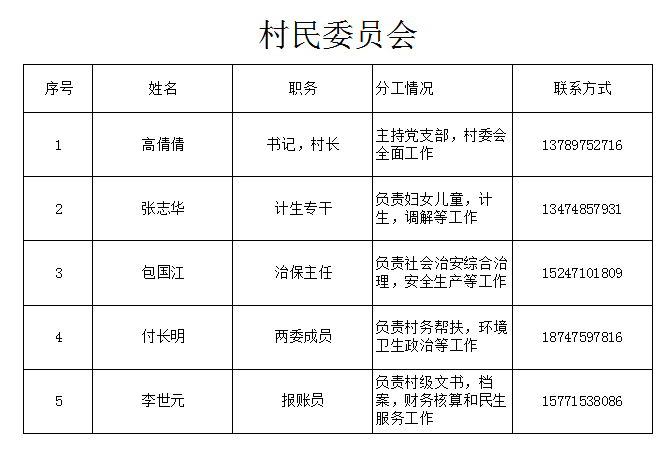 嘎查村民委员会、村务监督委员会成员名单、分工、联系方式、村民代表、网格员队伍情况