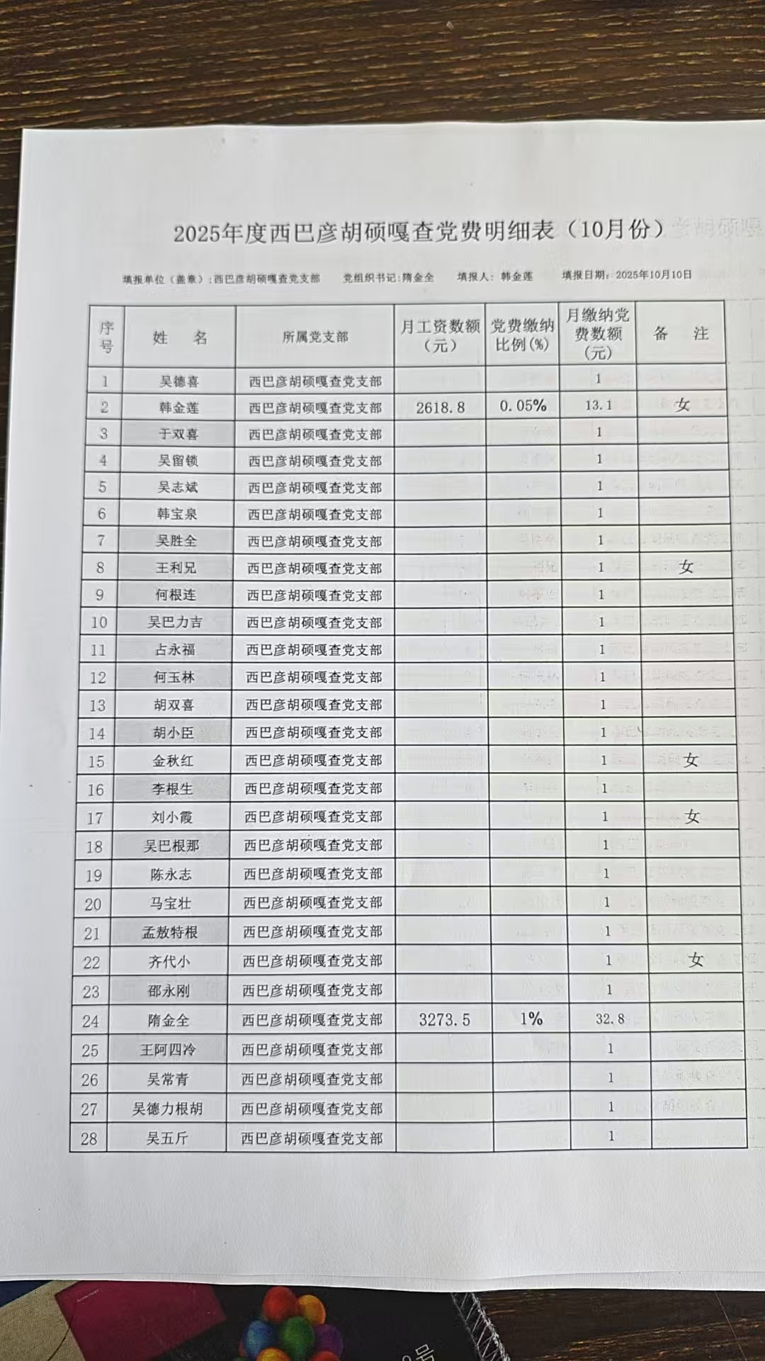 2025年10月党费
