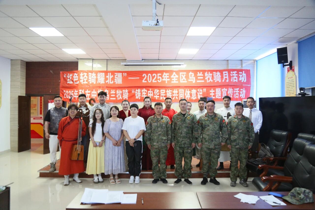 6月24日,科左中旗乌兰牧骑走进科尔沁社区,开展“红色轻骑耀北疆”——2025年全区乌兰牧骑月活动。深入贯彻落实习近平文化思想和习近平总书记给乌兰牧骑队员们的回信精神,以铸牢中华民族共同体意识为工作主线,推进北疆文化建设提升行动,落实自治区党委宣传部、自治区文化和旅游厅关于乌兰牧骑“学·创·演”工作部署。