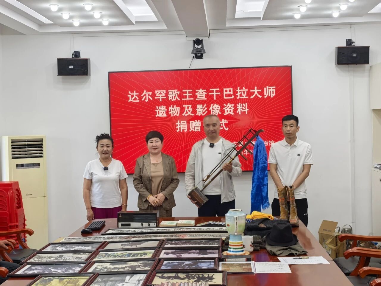 6月26日,在达尔罕歌王查干巴拉诞辰100周年的特殊时刻,一场意义非凡的捐赠仪式在科尔沁左翼中旗博物馆举行。仪式现场,查干巴拉大师的女儿吴白玉、吴金玉怀着对父亲的深切追思,将父亲生前珍爱的四胡乐器及记录其艺术生涯的珍贵影像制品等(61件)郑重捐赠给科尔沁左翼中旗博物馆。