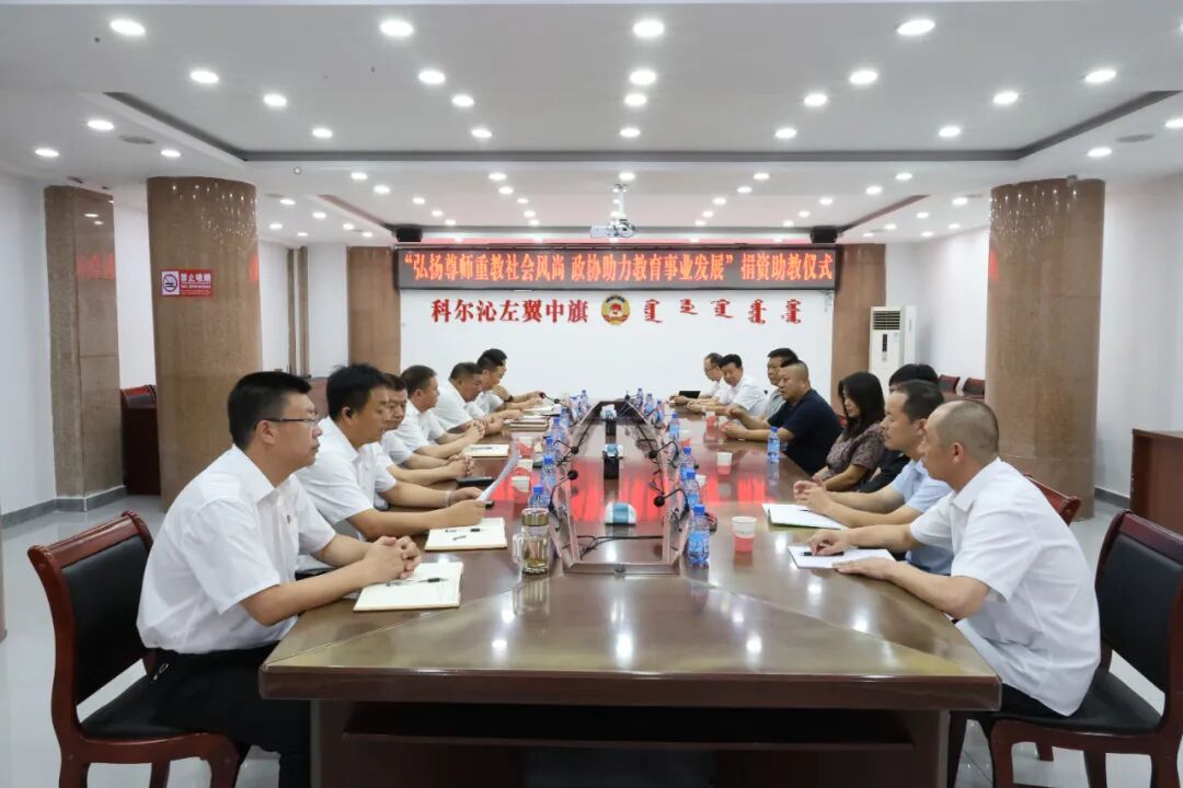 为深入贯彻落实习近平新时代中国特色社会主义思想,弘扬尊师重教的社会风尚,8月25日,旗政协举行“弘扬尊师重教社会风尚 政协助力教育事业发展”捐资助教活动。旗政协主席宝喜,副主席杜惠文、闫宝东、王彦辉出席捐赠仪式,秘书长陈瑜主持,旗教体局局长李洪业、接受捐赠的保康一中和旗蒙古族中学的负责同志,以及政协委员、爱心企业家代表共同参加活动。