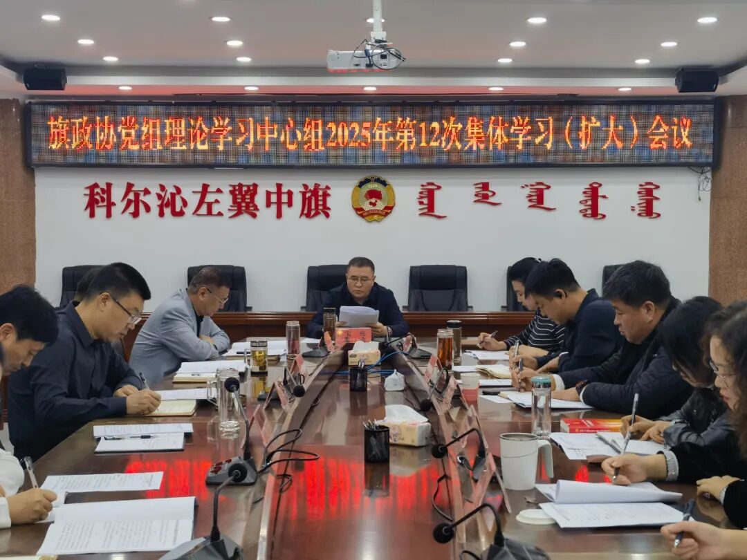 11月6日,旗政协党组理论学习中心组召开2025年第12次集体学习(扩大)会议。旗政协党组书记、主席宝喜主持会议。旗政协党组成员、副主席闫宝东,党组成员、秘书长陈瑜参加会议。旗政协副主席石秀梅及其他科级干部列席会议。