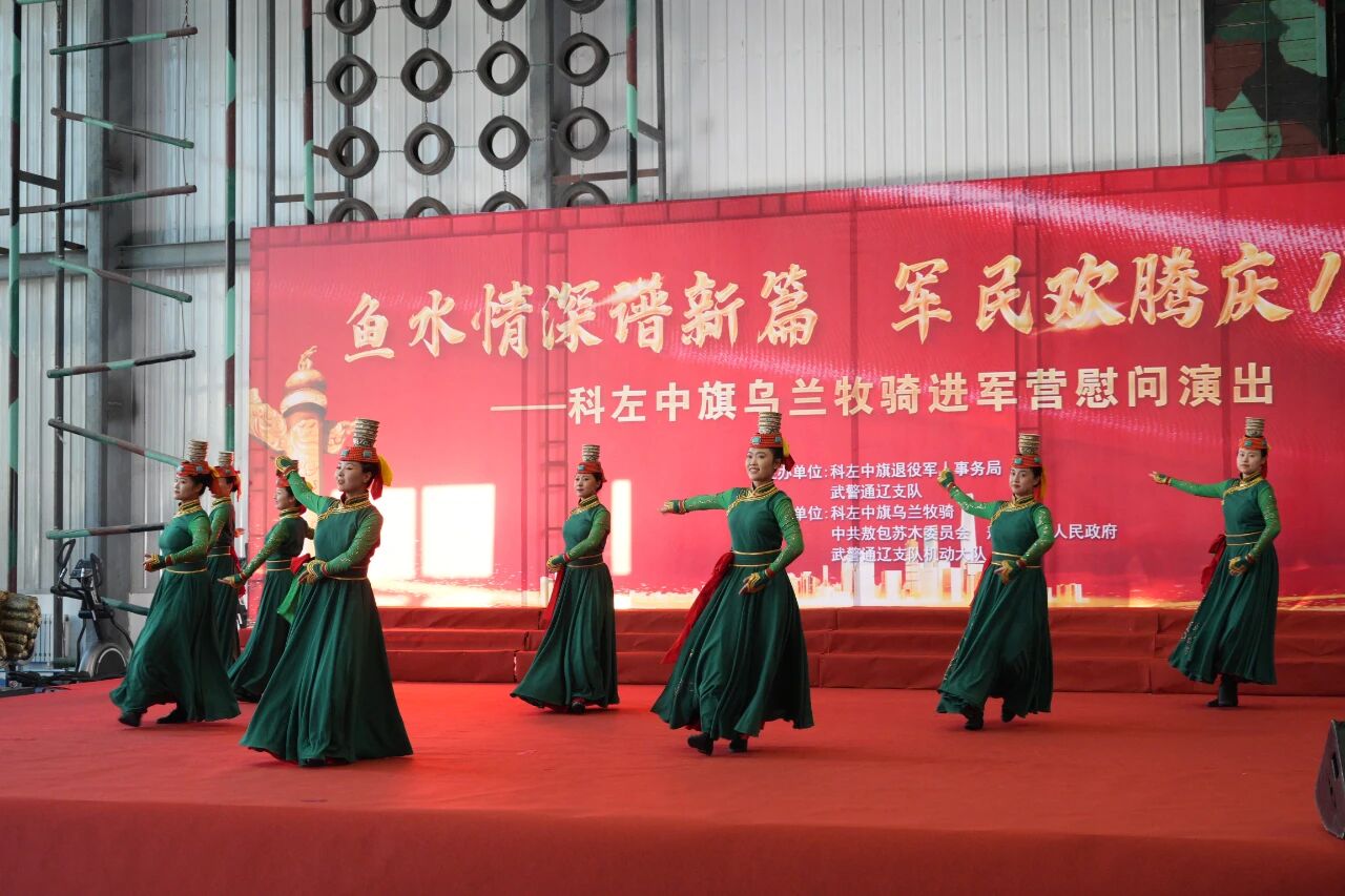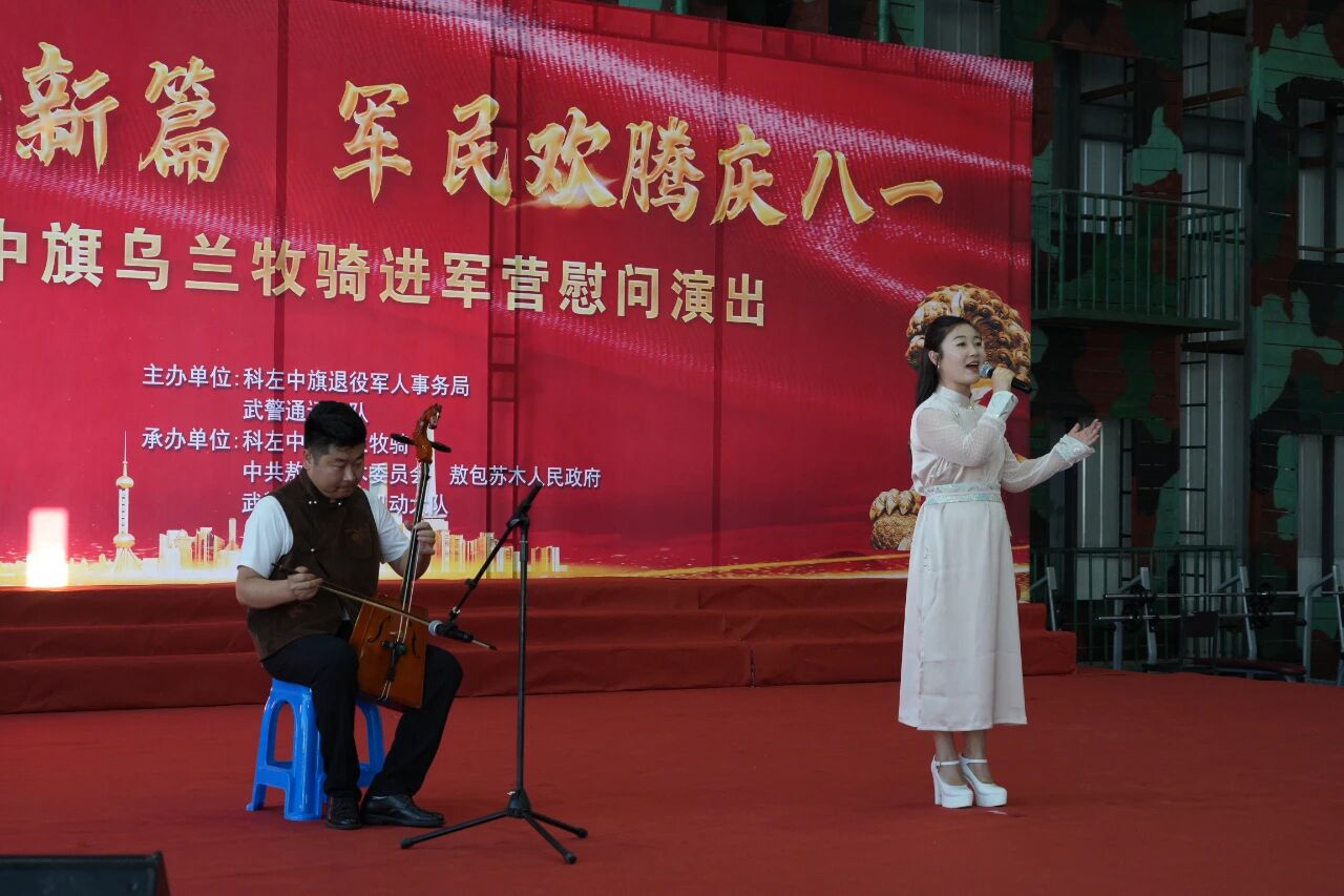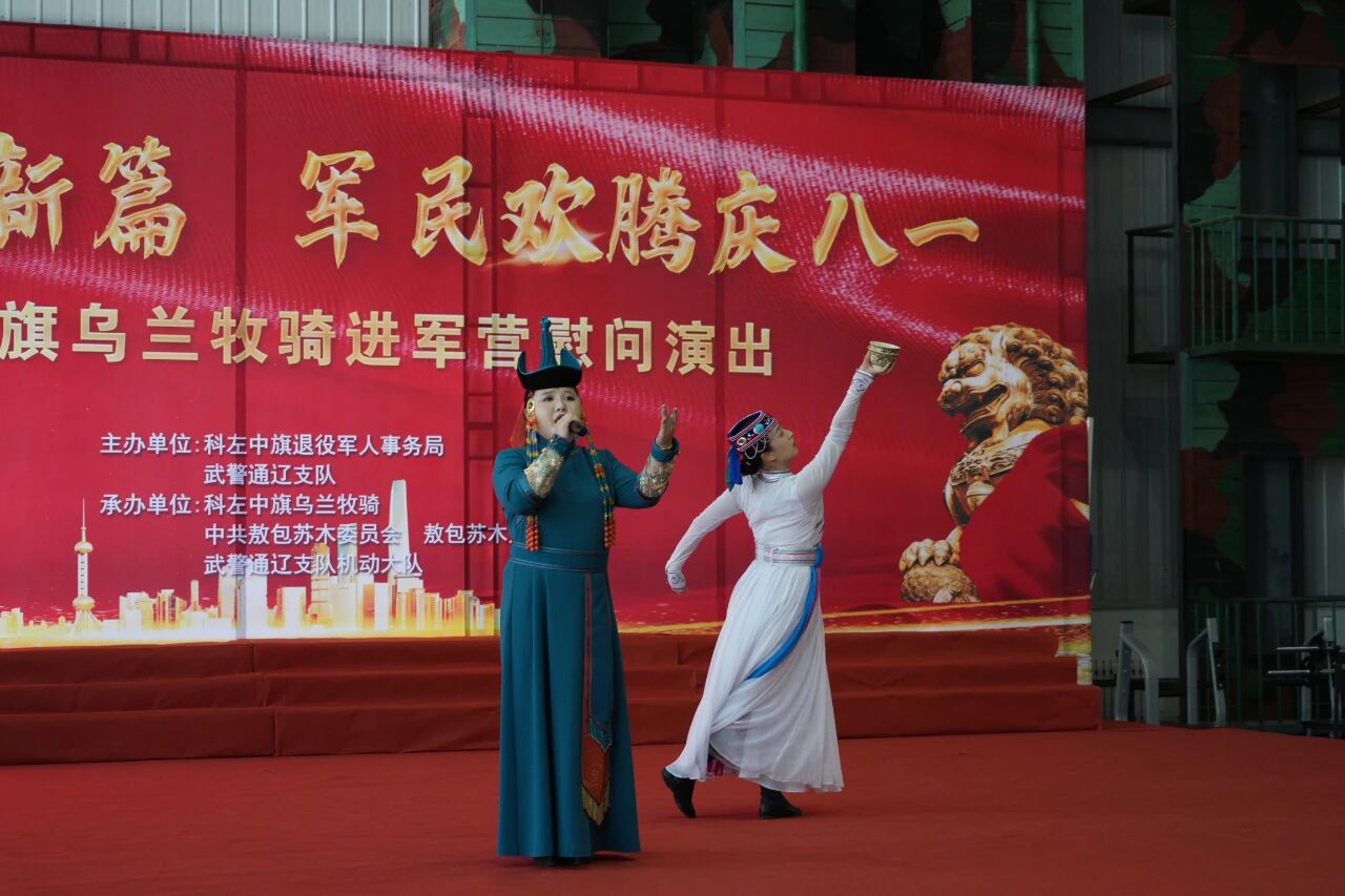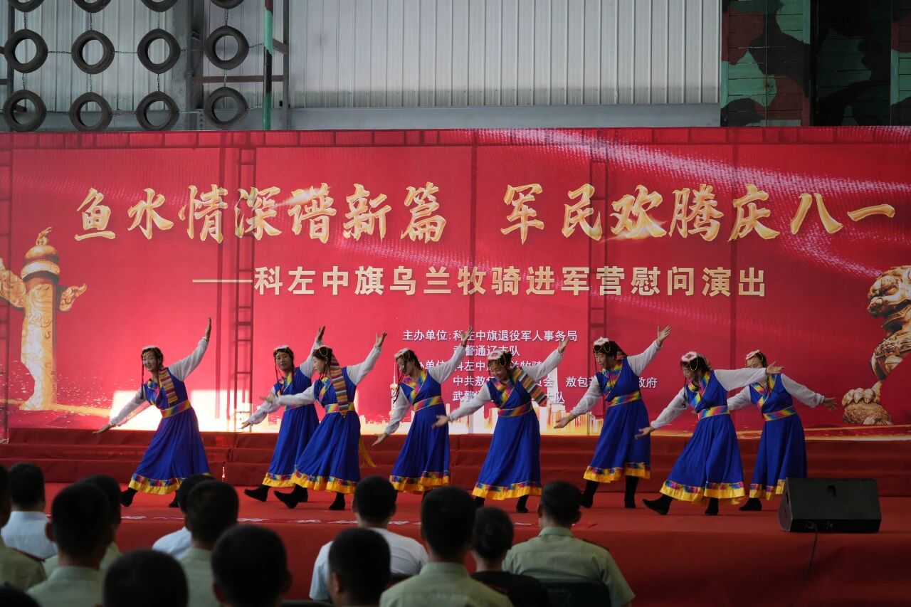 为庆祝中国人民解放军建军98 周年,弘扬拥军优属、拥政爱民的光荣传统,7 月 30 日,科左中旗乌兰牧骑走进军营,为部队官兵带来了一场精彩纷呈的慰问演出,共叙军民鱼水深情。