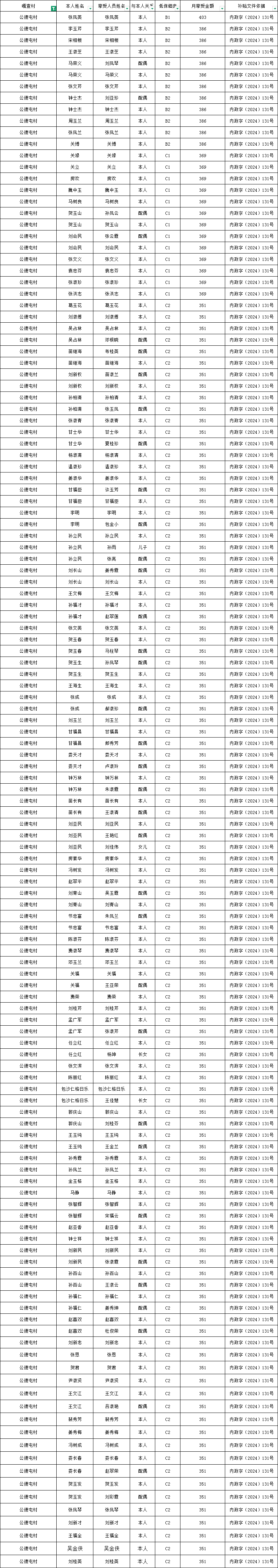 公德屯村2025年11月农村低保资金发放花名册