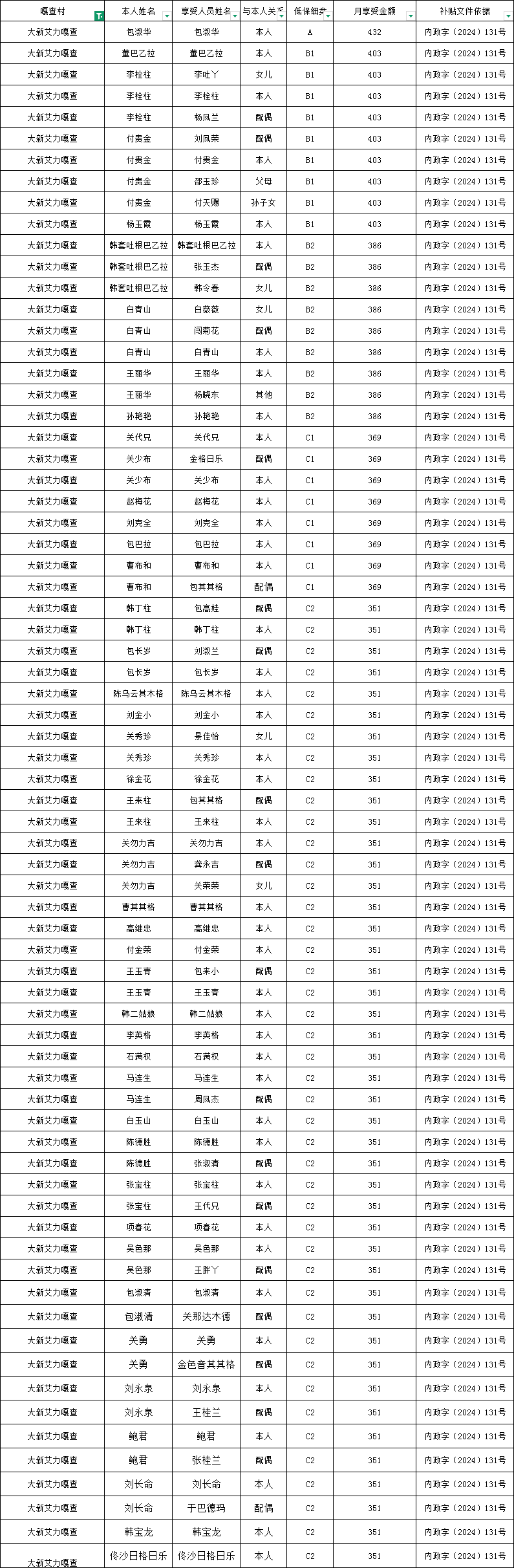 大新艾力嘎查2025年11月农村低保资金发放花名册