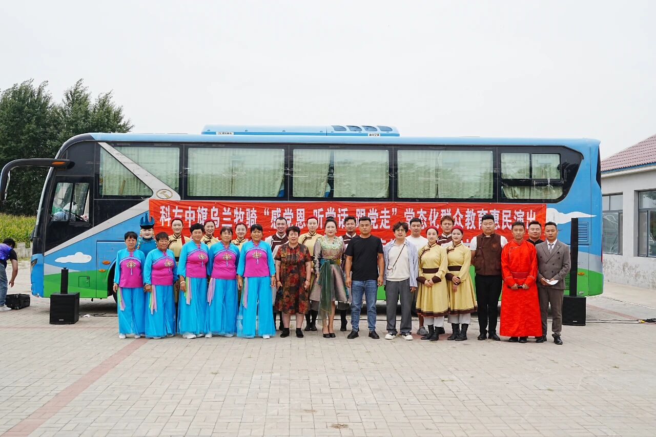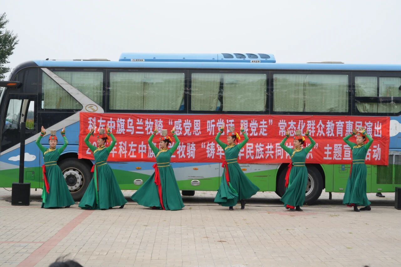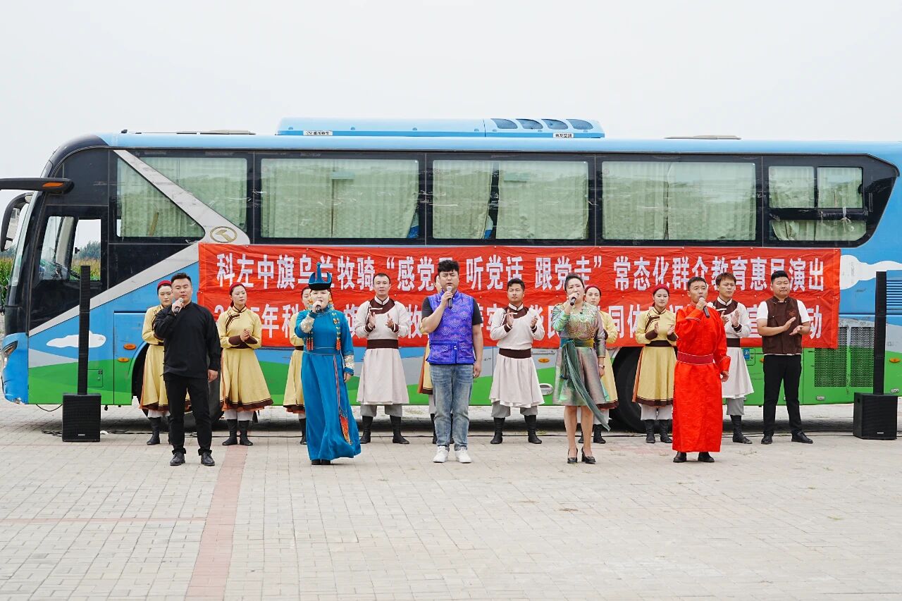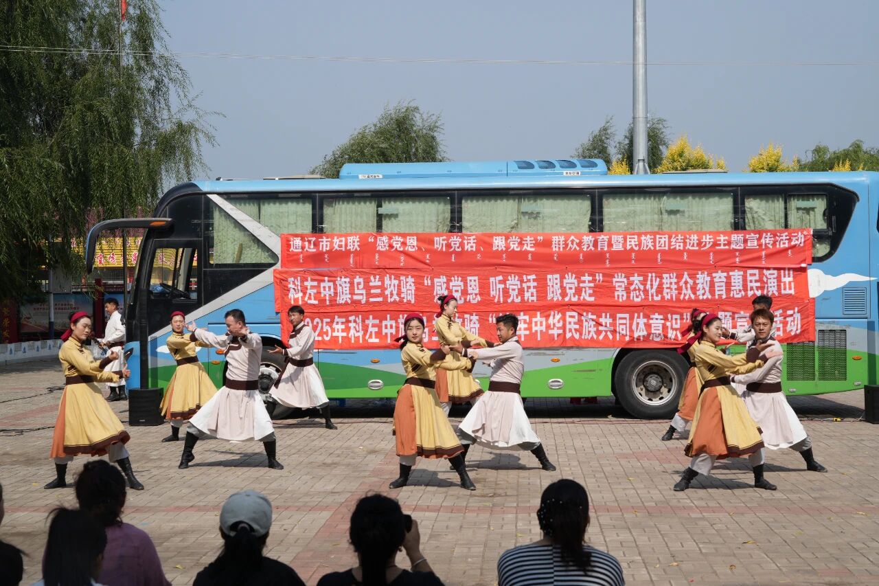 9 月 5 日,科左中旗乌兰牧骑深入架玛吐镇苏根好力宝嘎查、五间房嘎查,开展 “感党恩 听党话 跟党走” 常态化群众教育惠民演出活动。此次演出以文艺为载体,旨在把党的声音和关怀传递到基层一线,丰富群众精神文化生活,进一步凝聚起各族群众奋进新征程的磅礴力量。