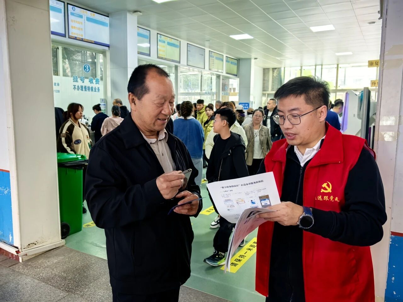 针对老年群体,工作人员更是提供“一对一”贴心服务,用通俗易懂的语言讲解APP使用方法,帮助他们绑定电子医保卡、开通亲情服务,解决老年人就医“数字鸿沟”难题。