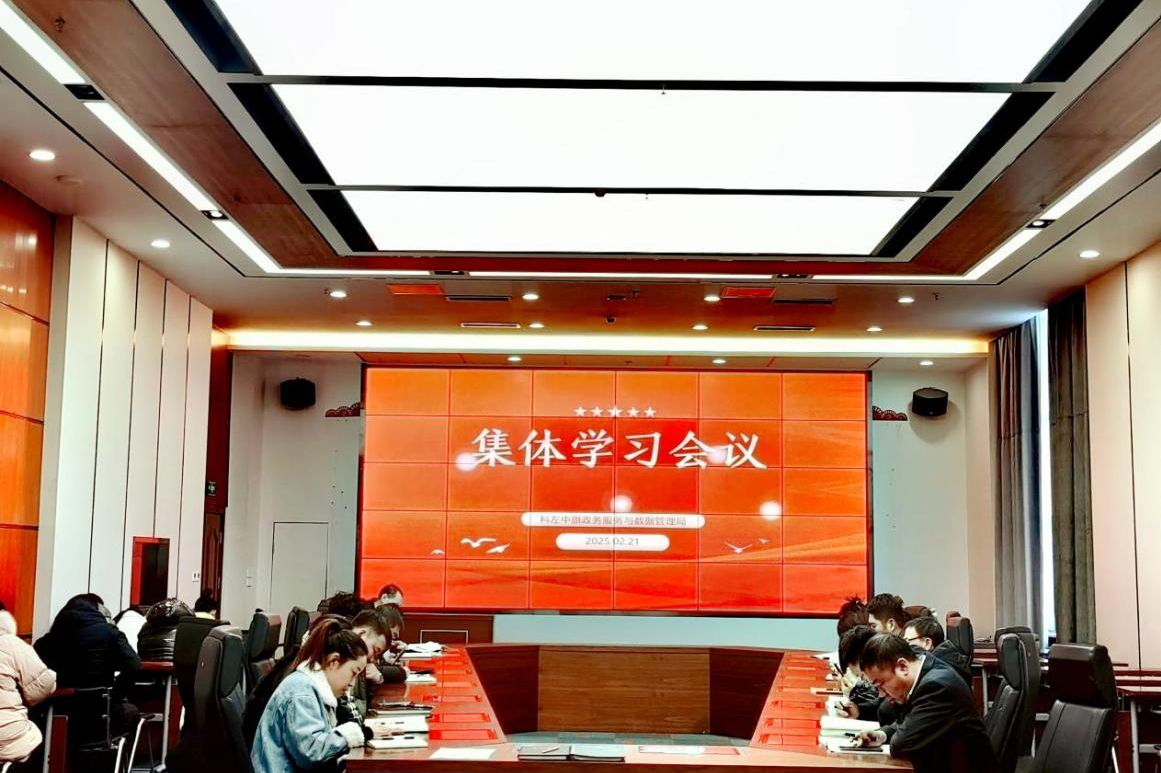2月21日,旗政数局召开集体学习会议,旨在以理论学习为先导,精准对接民生需求,力求在思想与行动上与时代需求同频共振,为2025年全局工作筑牢坚实基础。