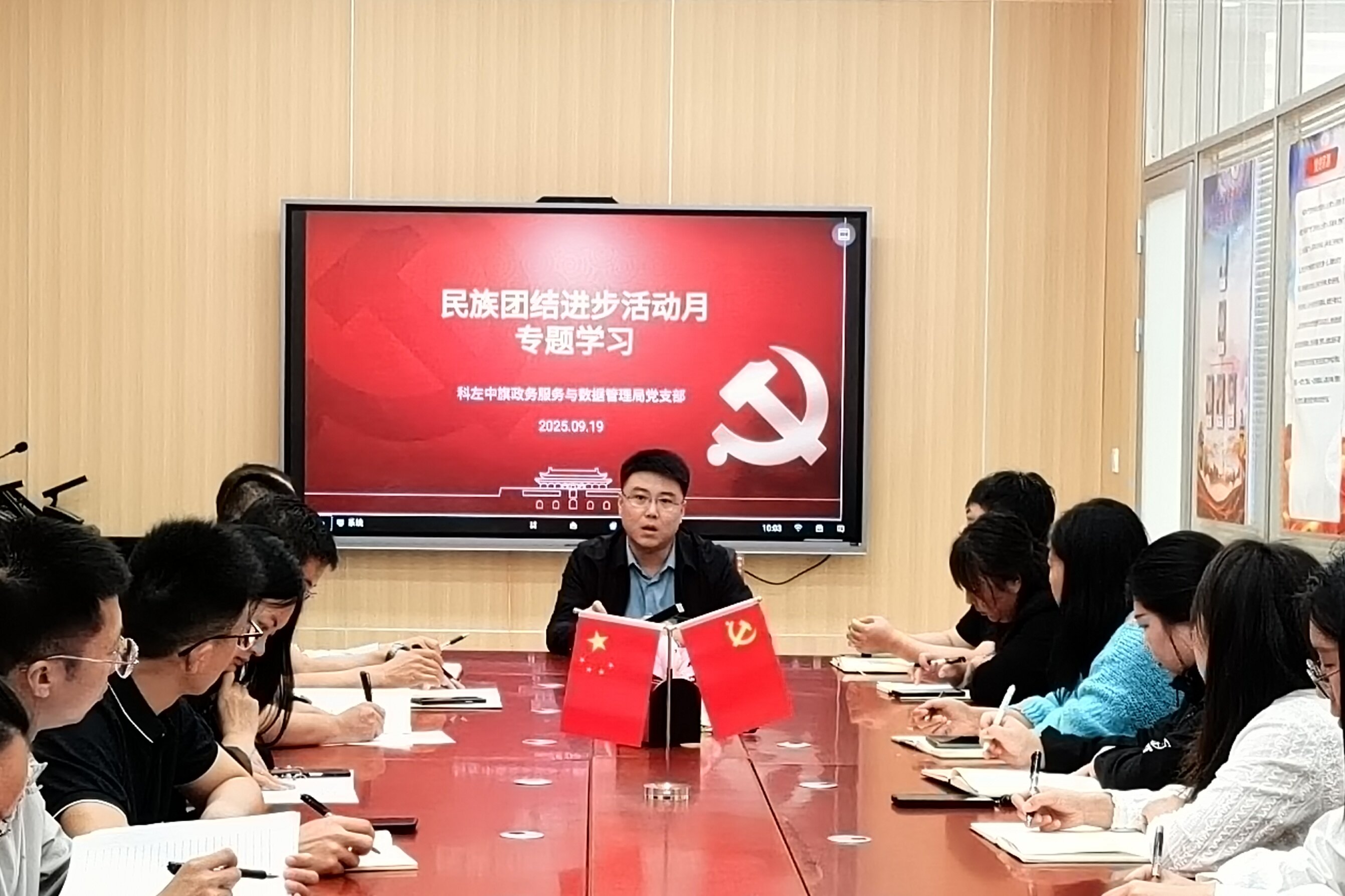 9月19日,旗政数局党支部组织召开民族团结进步活动月专题学习会,聚焦铸牢中华民族共同体意识主线,系统学习相关政策法规与最新精神,推动民族团结进步理念深植人心。