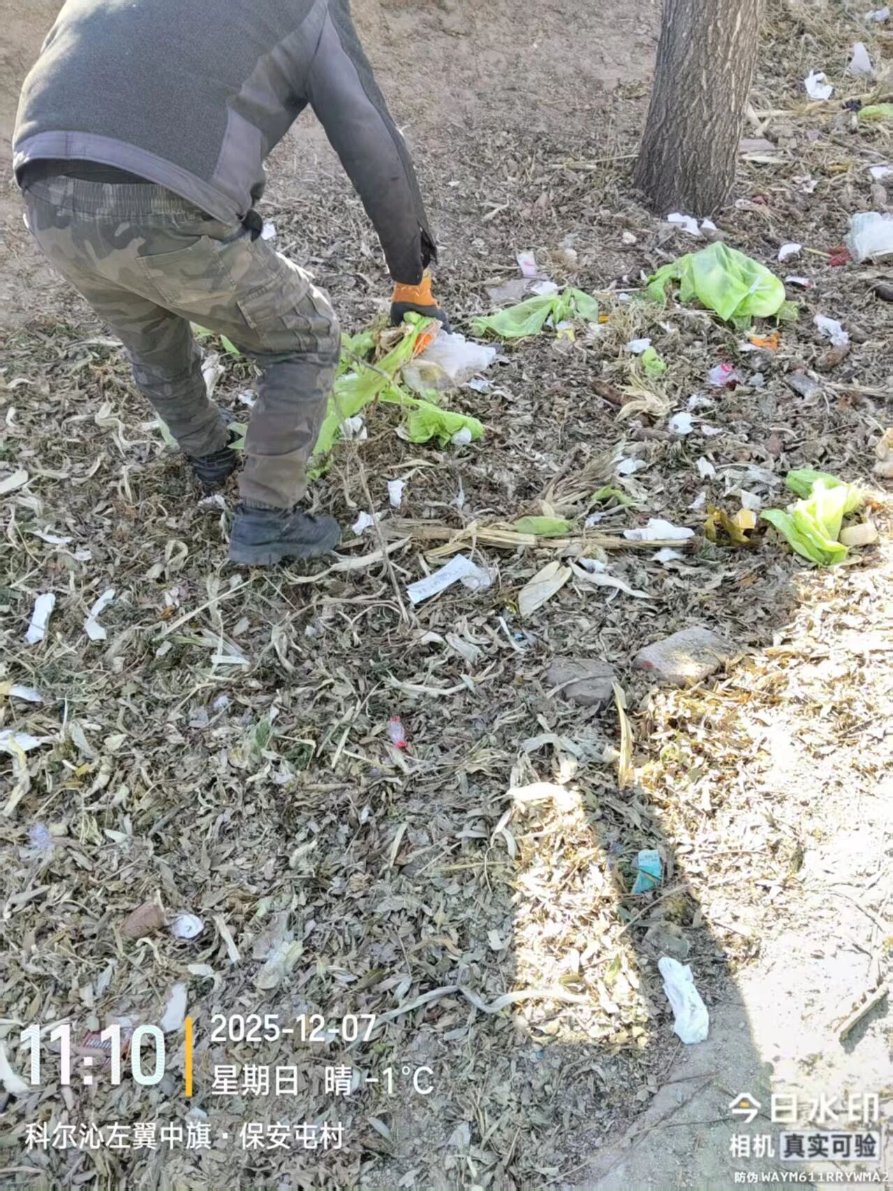 为改善嘎查村人居环境,12月7日,代力吉镇开展环境卫生专项整治行动。聚焦白色垃圾、生活生产废弃物等突出问题,全面推进环境“大扫除”。对田间地头、林地沟渠,对塑料袋、地膜碎片等白色垃圾,以及秸秆堆、废弃农物、建筑废料等生产生活废弃物进行集中清理。大家分工协作、干劲十足,做到“发现一处、清理一处、规范一处”,同时向周边群众宣传环保知识,引导群众自觉参与整治,养成文明卫生好习惯。