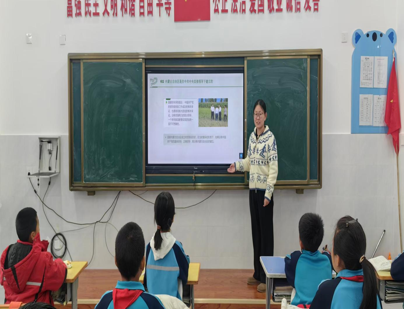 各年级道德与法治教师“六句话的事实和道理”融入课程中,结合历史史实与身边变化,用生动案例帮助学生理解党的恩情引导学生树立听党话、跟党走的坚定信念。