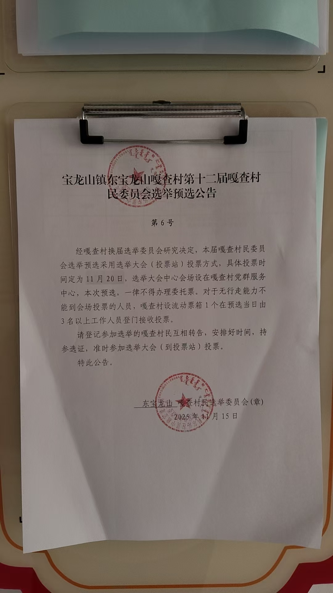 东宝龙山嘎查村第十二届嘎查村民委员会选举预选公告