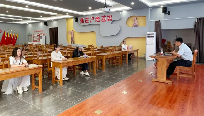 ▲在焦庄户地道战遗址纪念馆,听取张奎老师线上讲授的纪念伟大抗战精神互动教学课程