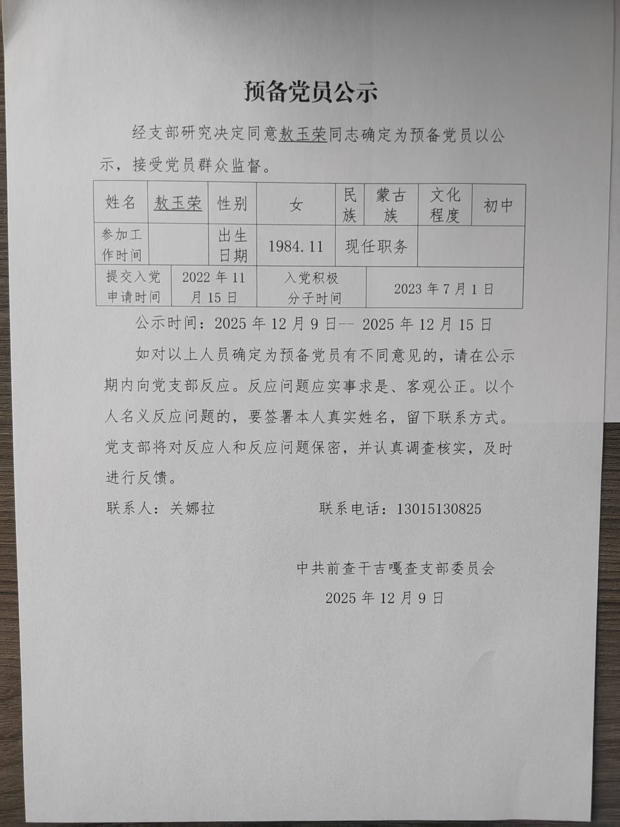 预备党员公示