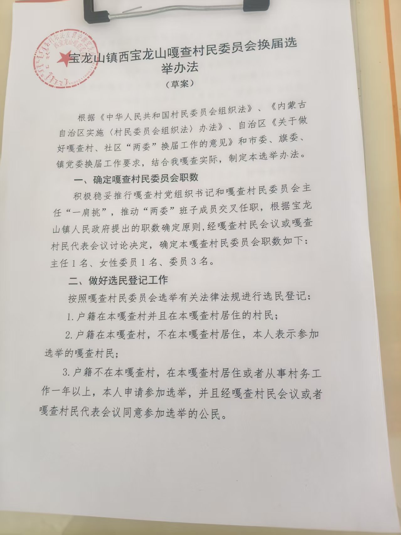 宝龙山镇西宝龙山嘎查村民委员会换届选举办法