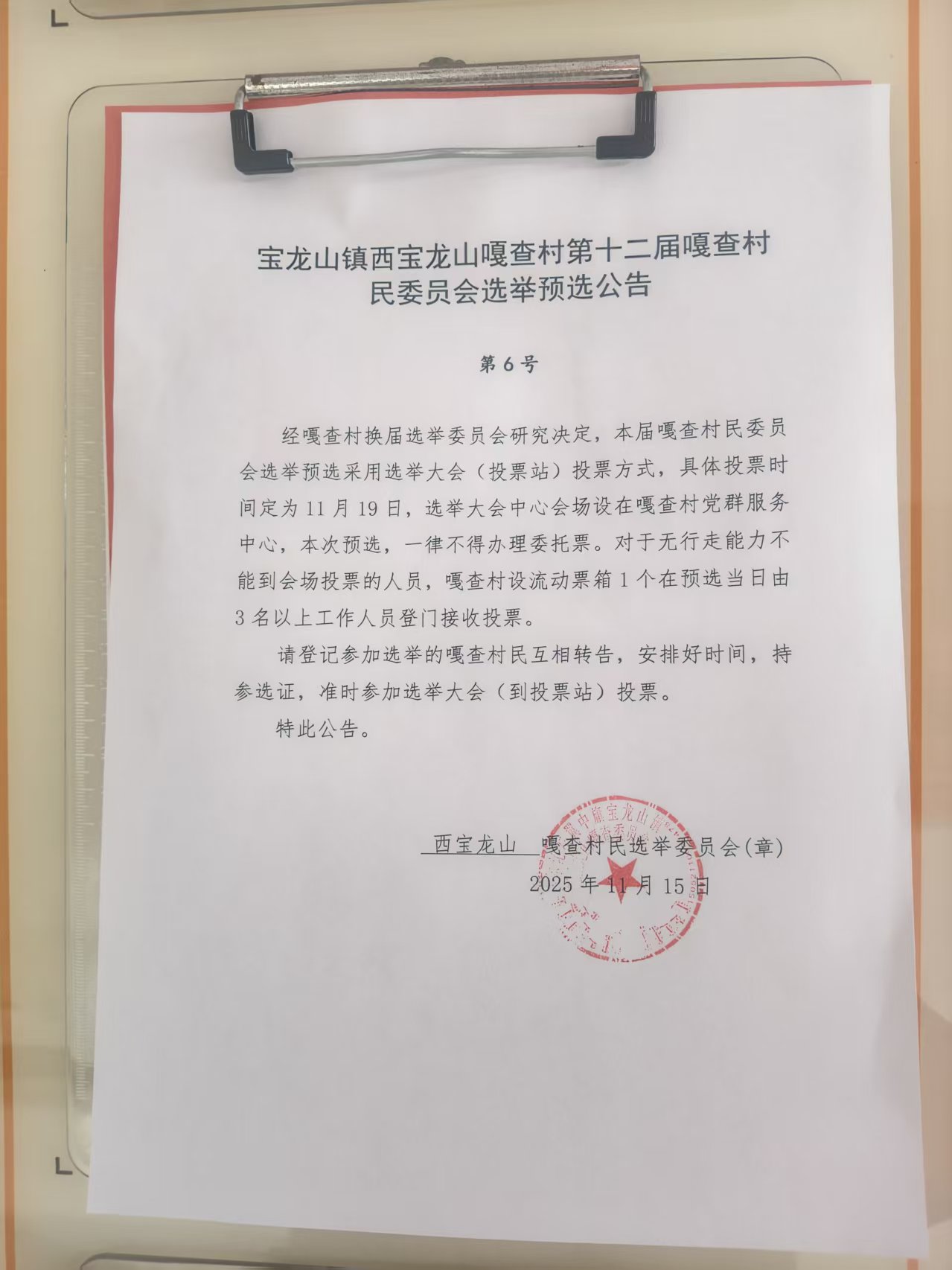 宝龙山镇西宝龙山嘎查村第十二届嘎查村民选举预选公告