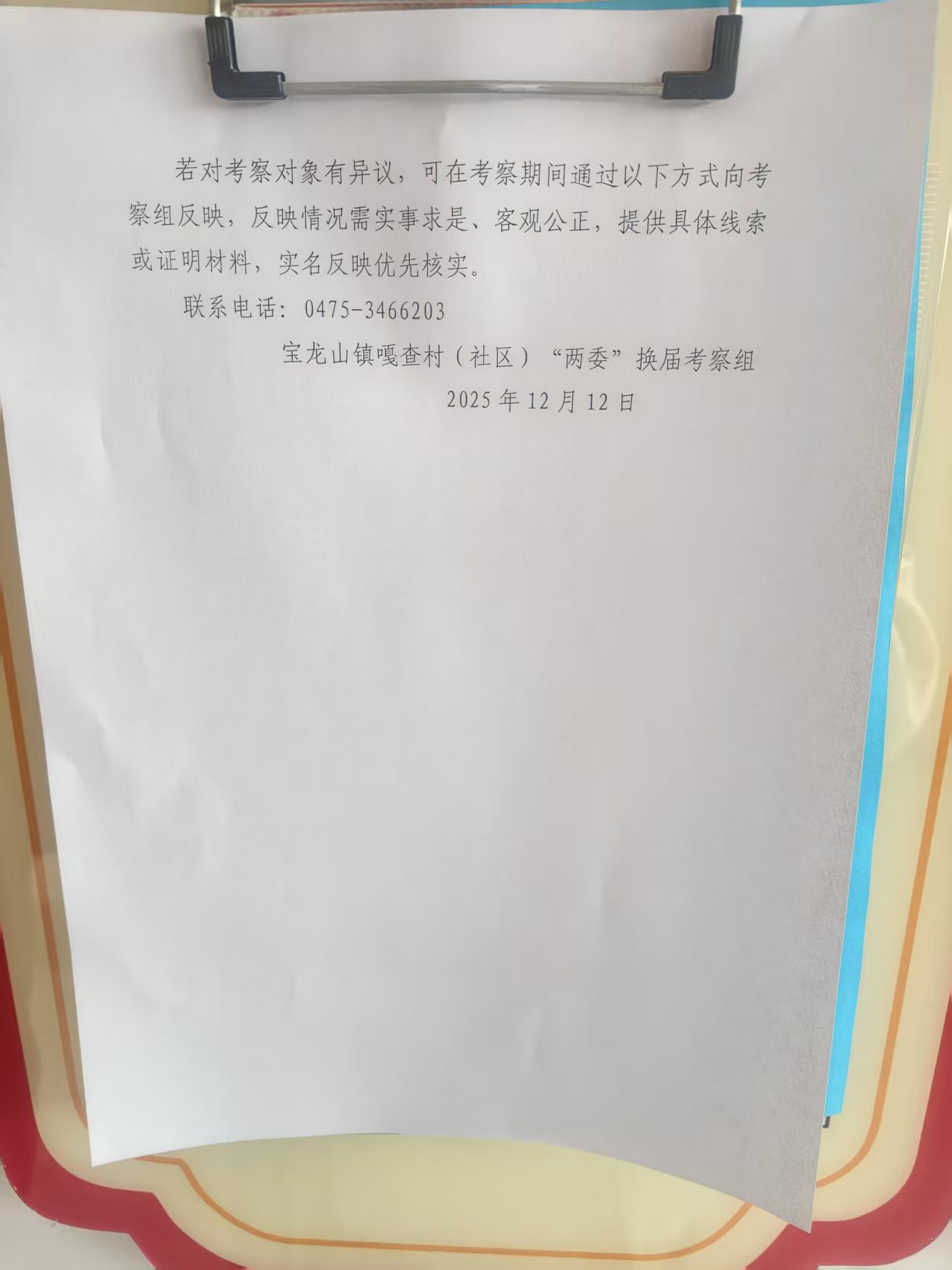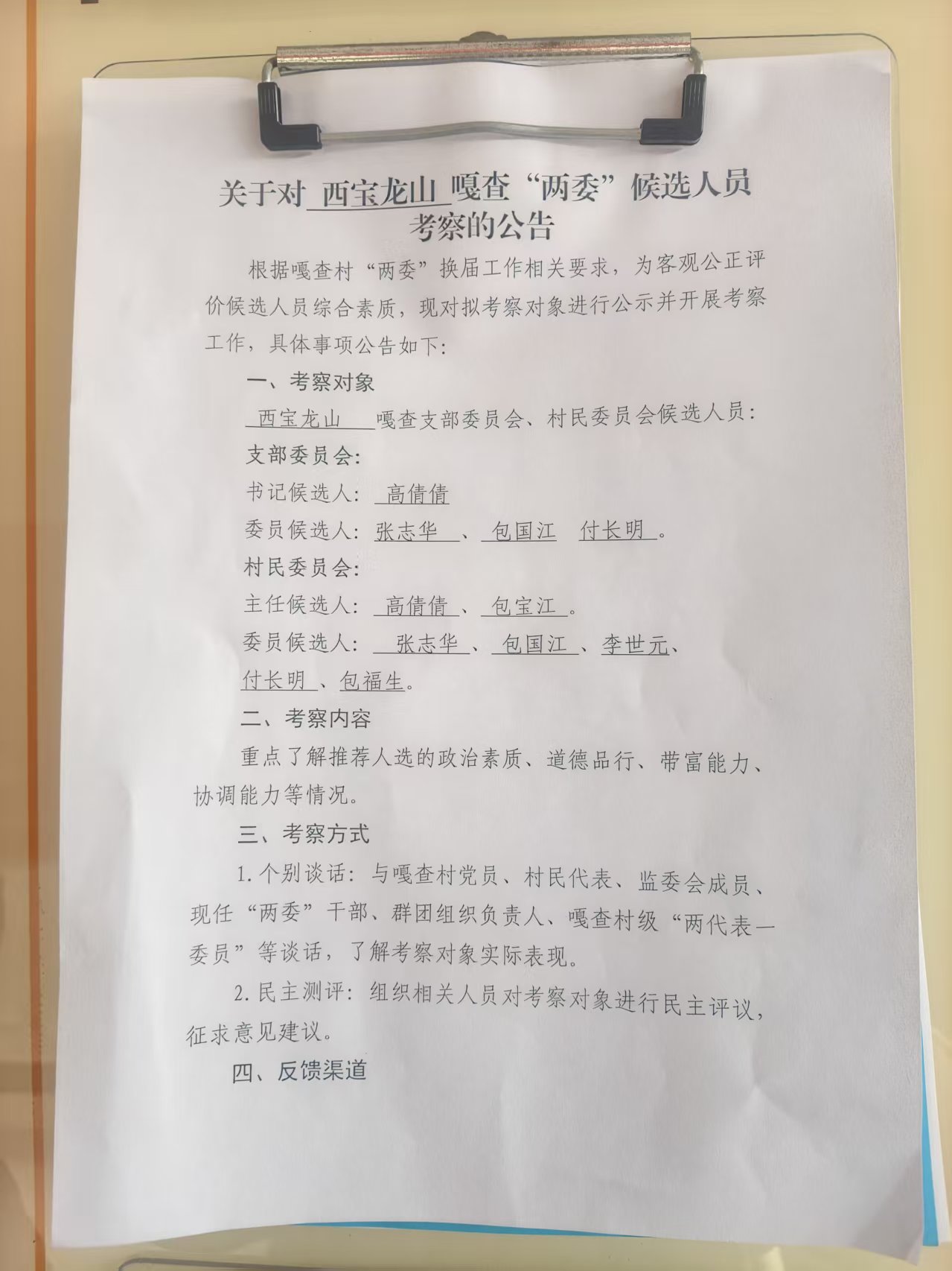 关于对西宝龙山嘎查两委候选人员考察公告