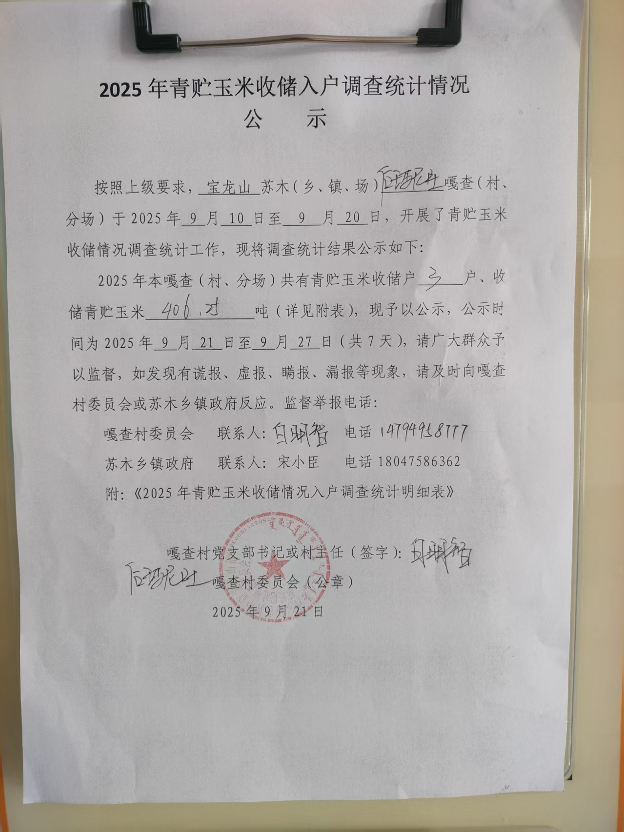 2025年青贮玉米收储入户调查统计情况公示