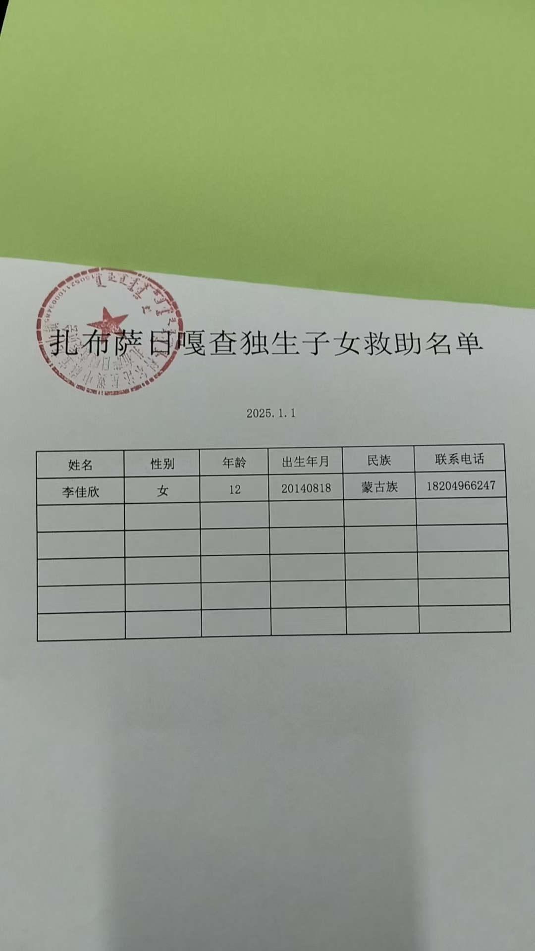 独生子女人员救助名单