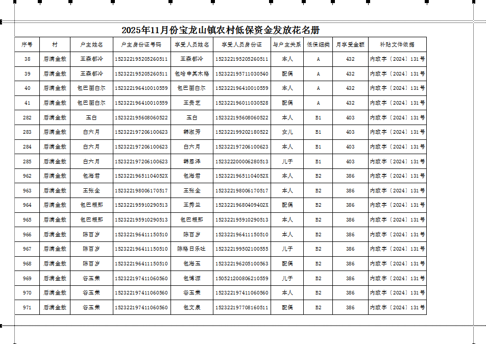 后满金敖嘎查低保清册