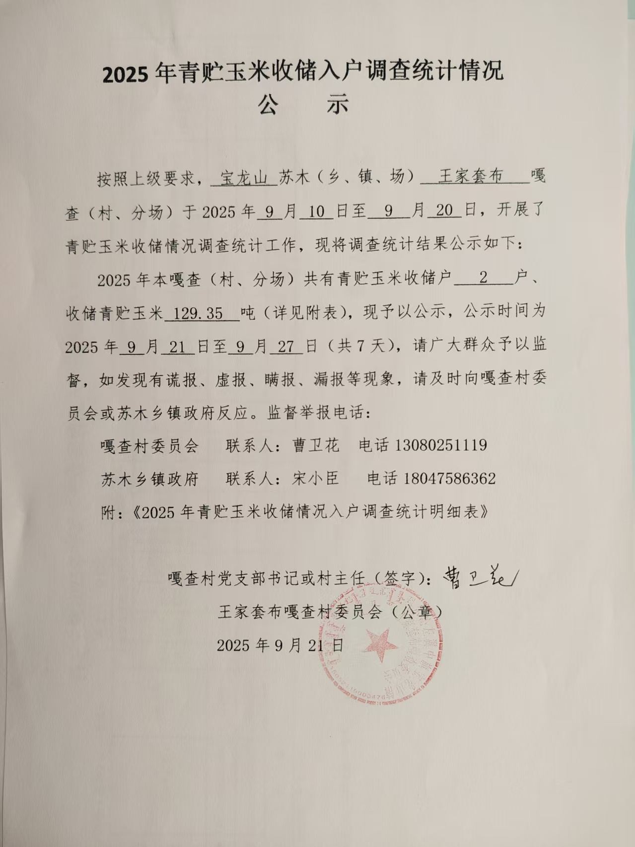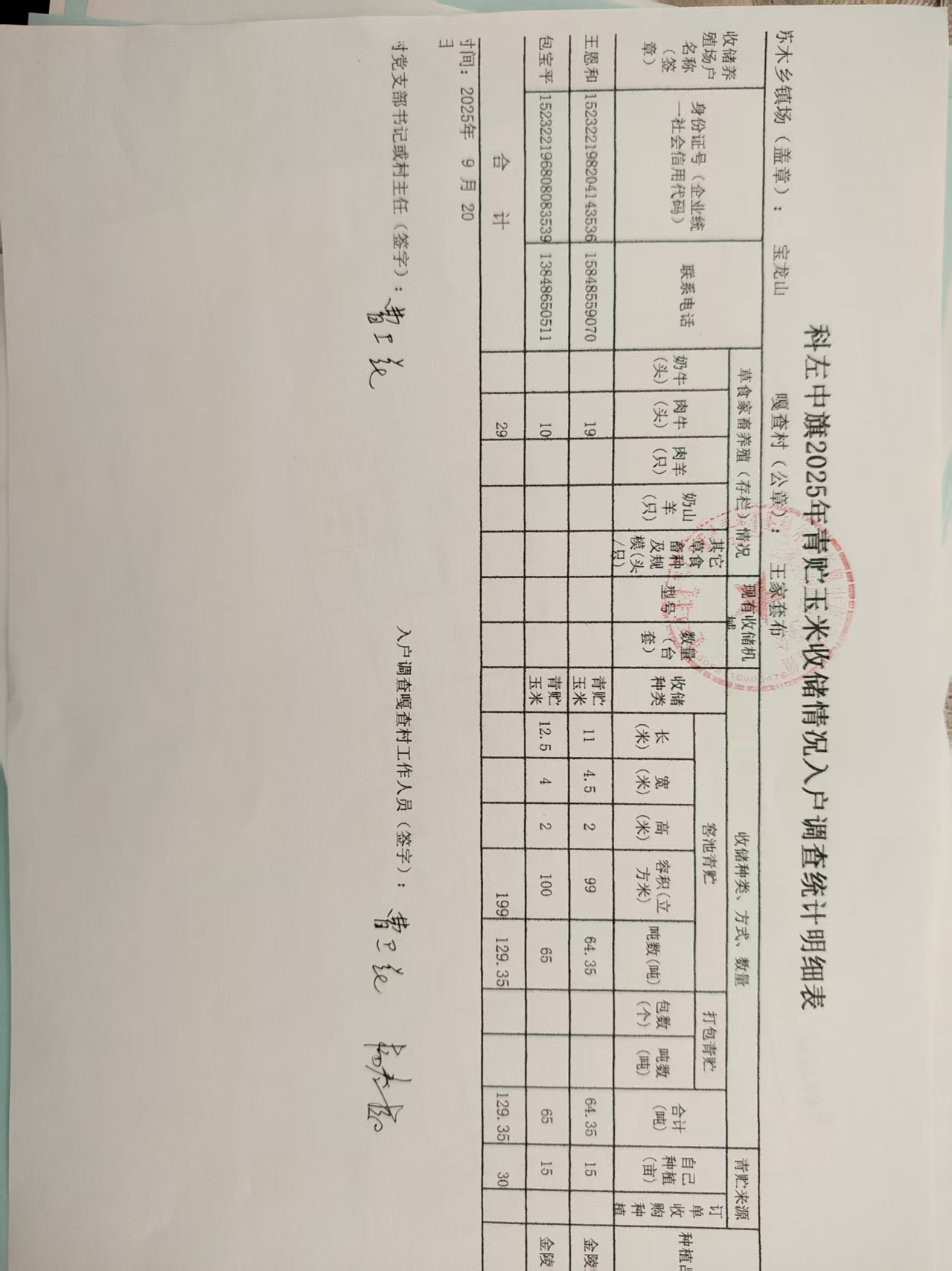 25年青贮玉米收储情况统计表