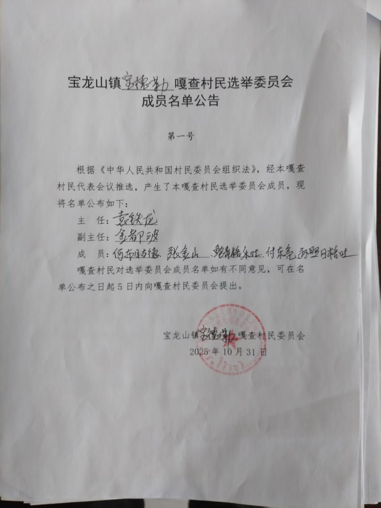 宝龙山镇宝德勒嘎查村民选举委员会成员名单公告