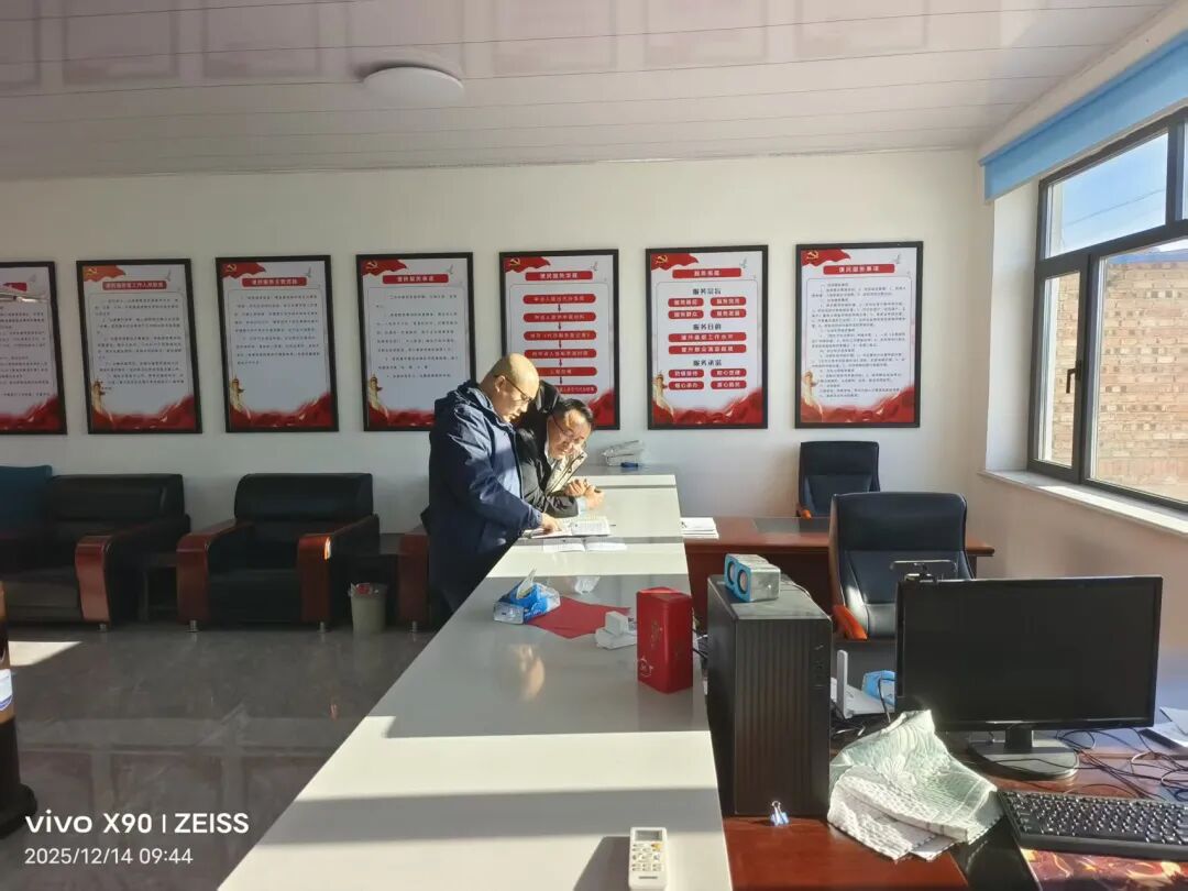 12月14日,架玛吐镇党群服务中心副主任黄冬冬深入十家户村、太平河村,面对面指导群众办理医保缴费,扎实推进辖区医保缴费工作有序开展。