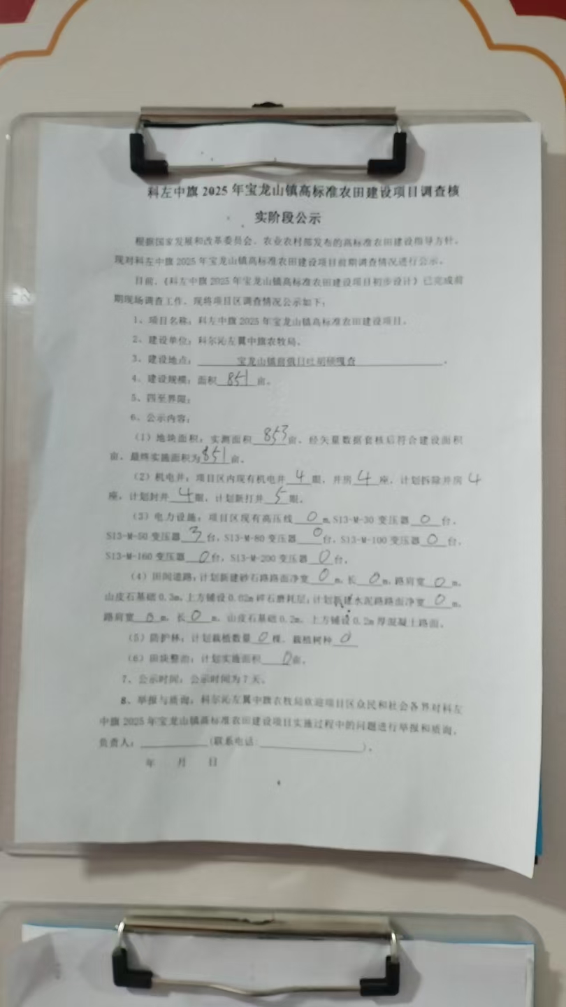 科左中旗2025年宝龙山镇高标准农田建设项目调查核实阶段公示