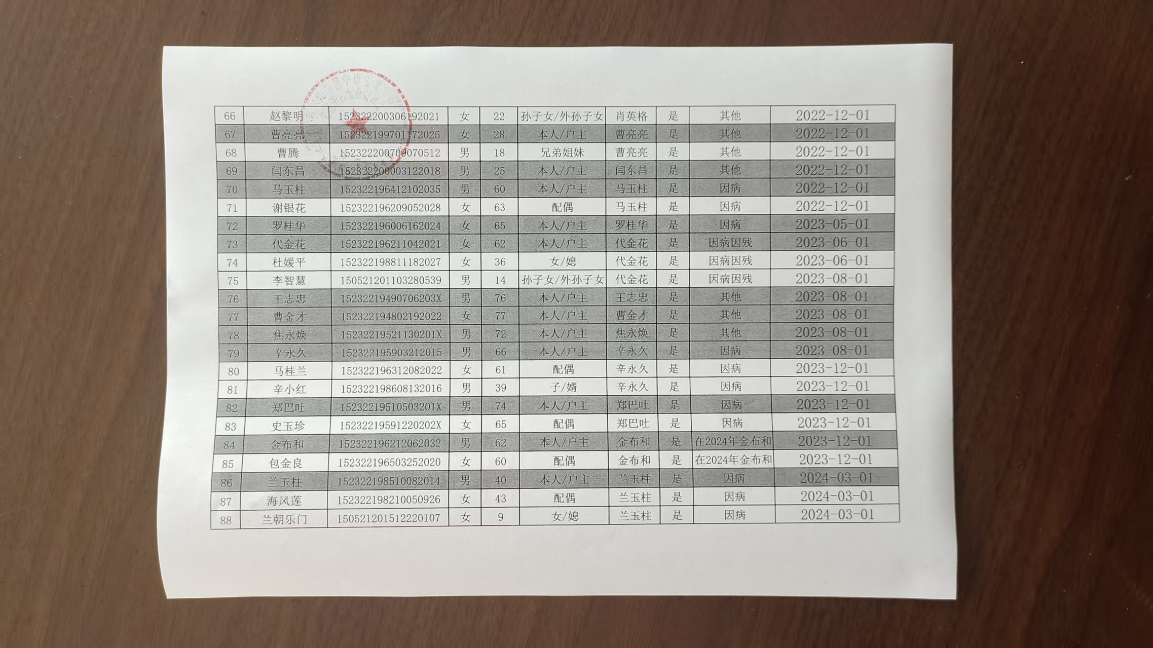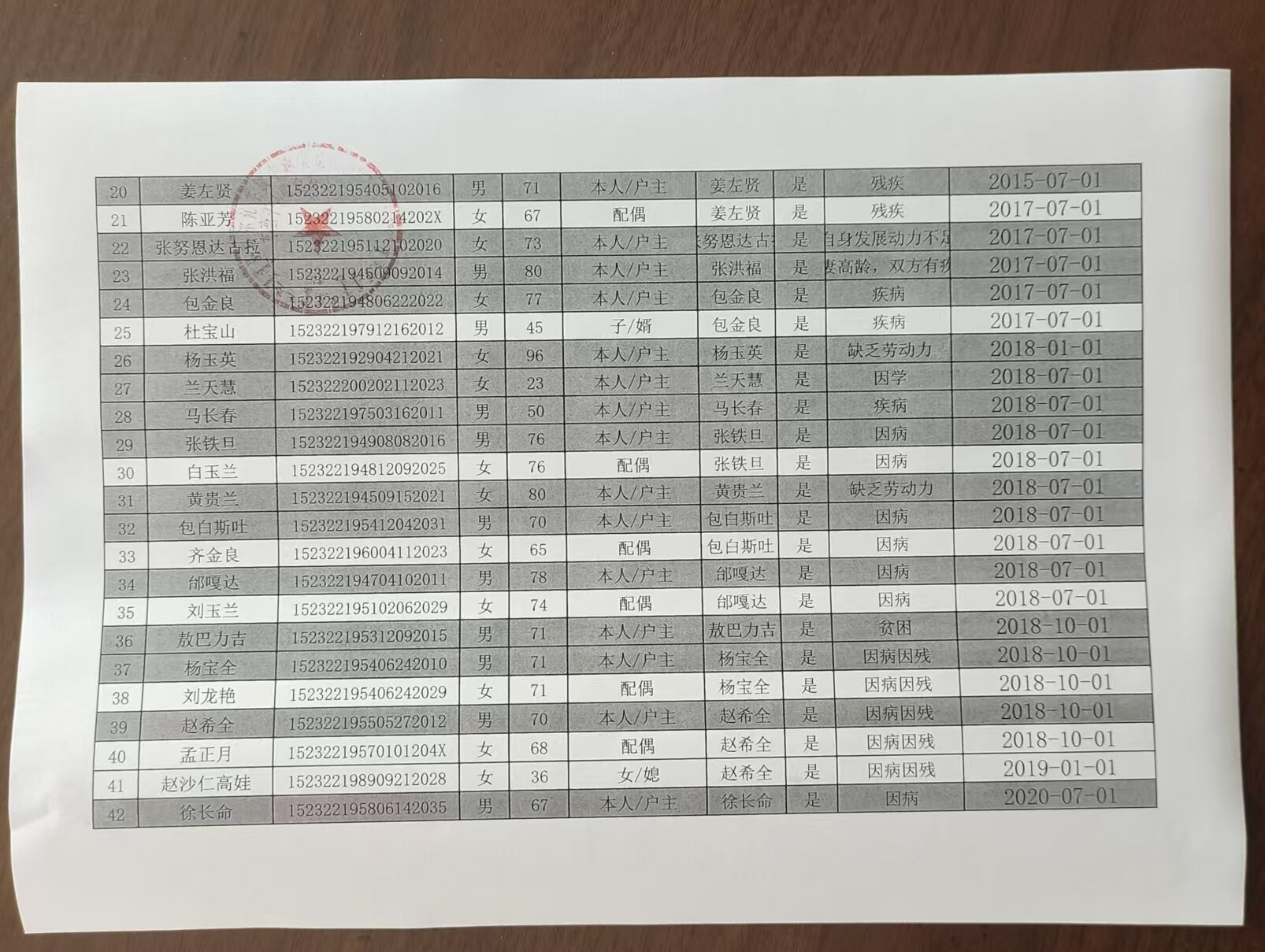 在享低保户名单