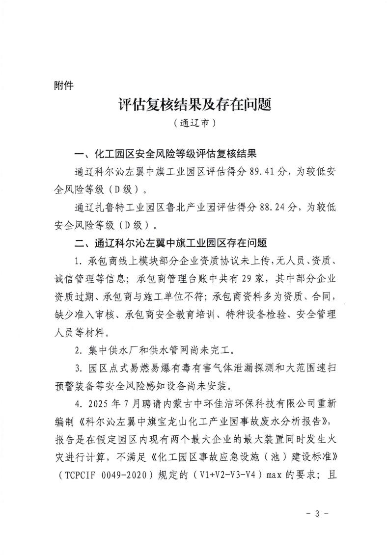 关于化工园区安全风险等级评估复核结果的通知