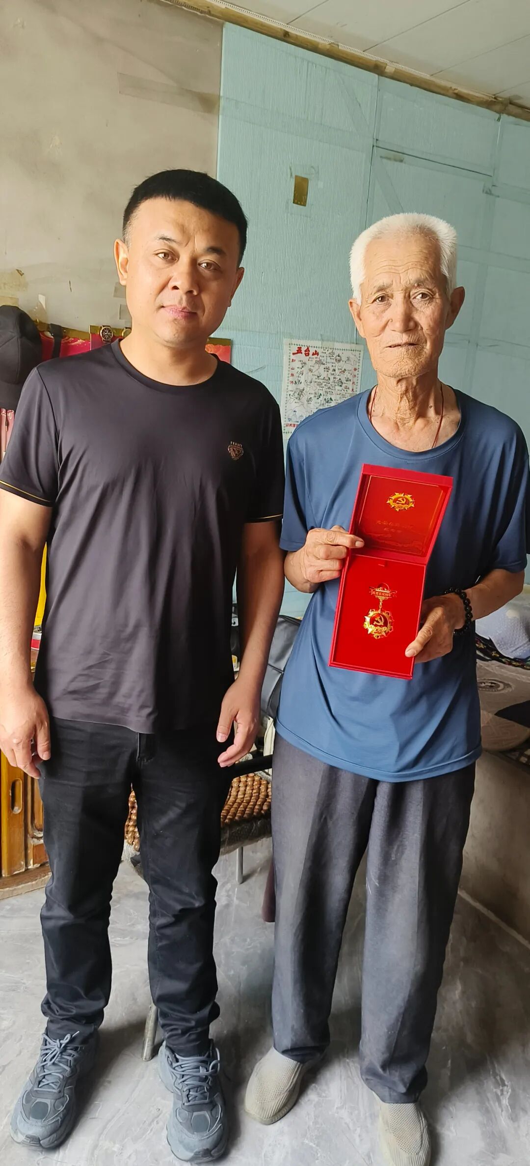 7月1日,党委委员、政府副镇长邓阿木尔门德深入包联嘎查村为党龄50周年的老党员同志颁发“光荣在党50周年”纪念章,并转达镇党委政府的关心和问候。
